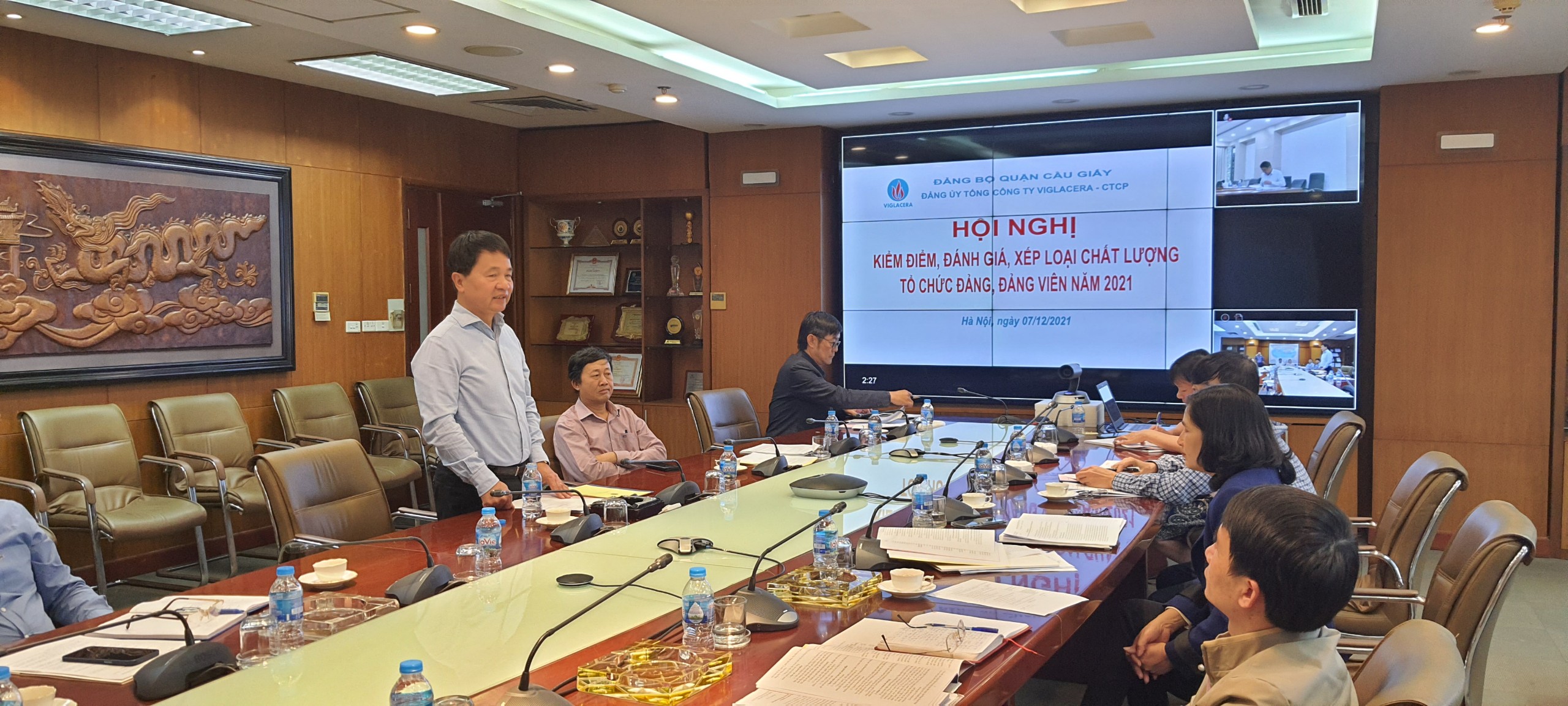 Thực hiện Kế hoạch số 44-KH/QU ngày 05/11/2021 của Ban Thường vụ Quận ủy Cầu Giấy về “Kiểm điểm, đánh giá, xếp loại chất lượng hằng năm đối với tổ chức đảng, đảng viên và tập thể, cá nhân cán bộ lãnh đạo, quản lý”, Ngày 07/12/2021 tại Hà Nội, Đảng bộ Tổng Công ty Viglacera - CTCP đã tổ chức Hội nghị kiểm điểm, đánh giá xếp loại chất lượng tổ chức Đảng và Đảng viên năm 2021.