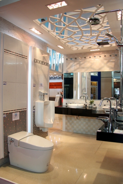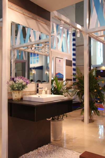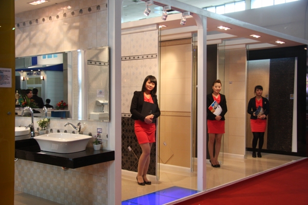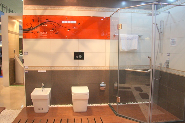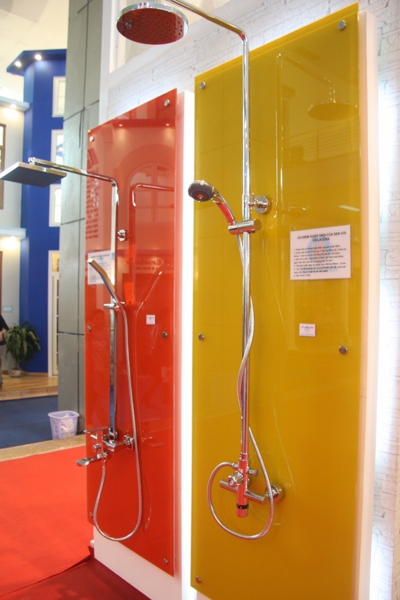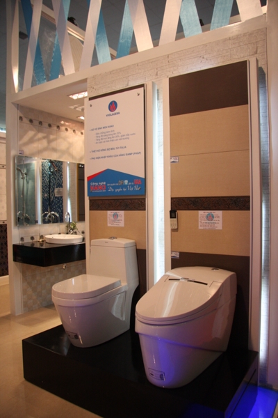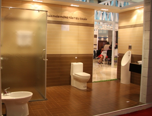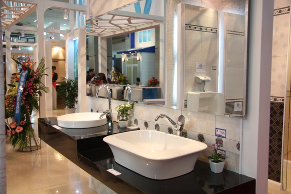 Tại vị trí trang trọng nhất của nhà A1 Triển lãm Giảng Võ, khu gian hàng của Viglacera được bố trí đẹp mắt với điểm nhấn là những sản phẩm đồng bộ mới nhất được trưng bày theo phong cách hiện đại. Đó là bộ sản phẩm phòng tắm tiêu chuẩn, phòng tắm cao cấp với các thiết bị sứ vệ sinh, sen vòi, phòng tắm kính, gạch ốp lát được Viglacera thiết kế và sản xuất đồng bộ trên khuôn mẫu đặt từ Italy mang phong cách châu Âu. Trên mỗi sản phẩm đều thể hiện được sự hài hòa từ kiểu dáng, màu men, chất liệu.