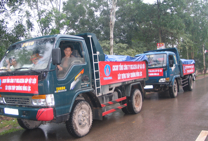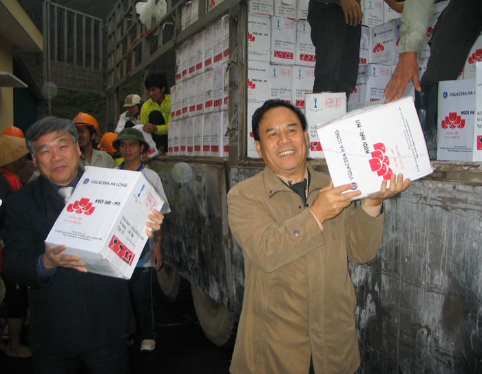 Ngày 15/1/2010, đoàn xe chở 50.000 viên gạch xây (Viglacera Hạ Long 1; Viglacera Đông Anh và Viglacera Từ Sơn); gần 80.000 viên ngói mũi hài (của Viglacera Hạ Long và Đông Triều) và trên 600 m2 gạch ốp lát (của Viglacera Thăng Long) được chuyển giao tới tận chân công trình. Tổng trị giá các VLXD này gần 450 triệu đồng.