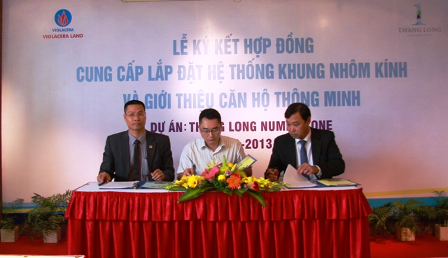 Với tiêu chí tuyển chọn những đối tác tốt nhất, sử dụng những vật liệu hoàn thiện tốt nhất cho dự án của mình, ngày 30/8/2013 Viglacera đã long trọng tổ chức Lễ ký hợp đồng cung cấp và lắp đặt hệ thống khung nhôm kính với hai nhà thầu là Eurowindown (Công ty CP cửa sổ nhựa Châu Âu) và CHAUA CAG (Công ty CP công nghiệp Châu Á). Đây là hai công ty hàng đầu Việt Nam trong lĩnh vực tư vấn, thiết kế, gia công, lắp đặt các loại cửa nhôm, vách kính, tường kính khổ lớn theo tiêu chuẩn Châu Âu. Bằng năng lực, kinh nghiệm và uy tín lâu năm, Eurowindow và CHAUA CAG đã thực hiện rất nhiều các hợp đồng cung cấp và xây lắp tương tự cho các dự án cao cấp tại Hà Nội như Lotte Center Hà Nội, Diamond Flower Tower, PVI Tower (bởi CHAUA CAG) và Mandarin Garden, Mipec Tower (bởi Eurowindow).