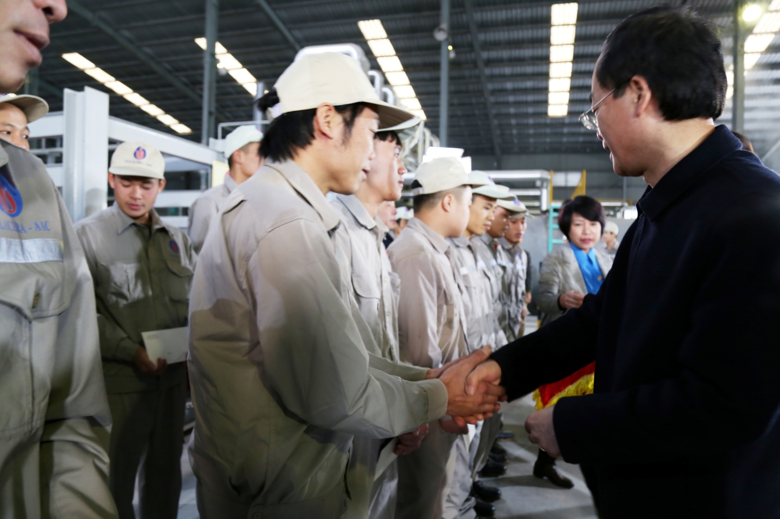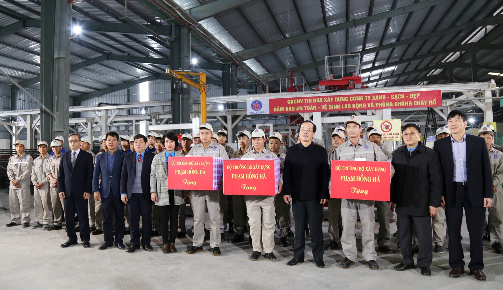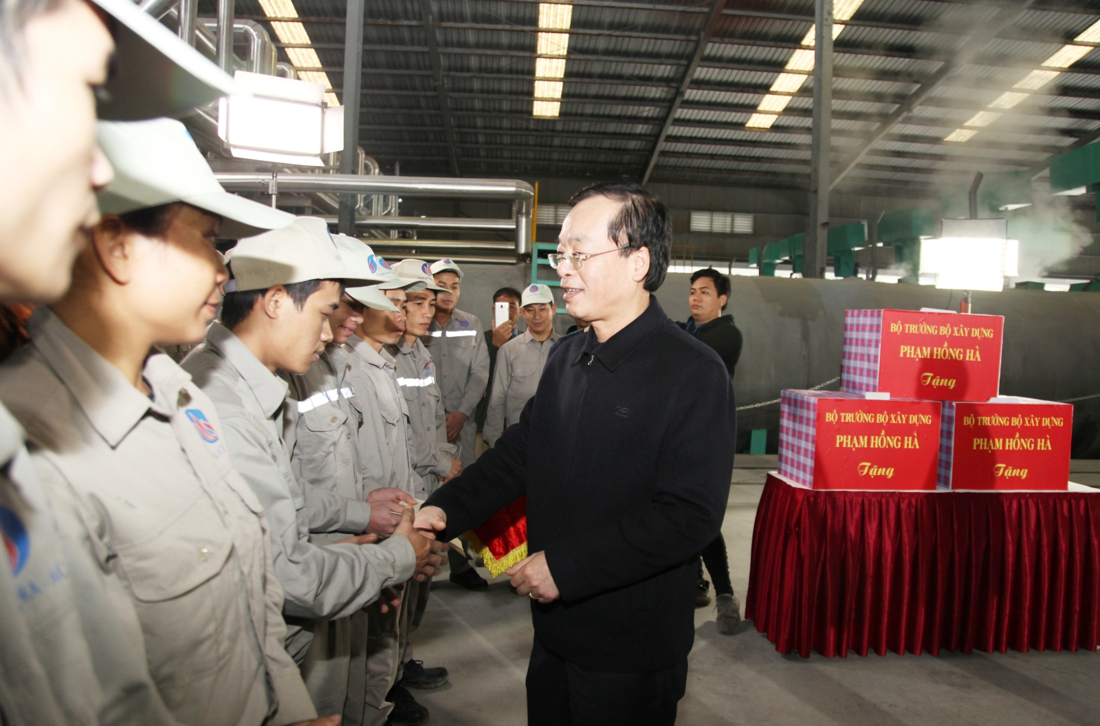 Bộ trưởng Bộ Xây dựng Phạm Hồng Hà thăm hỏi và trao quà Tết cho CBCNV nhà máy Bê tông khí Viglacera