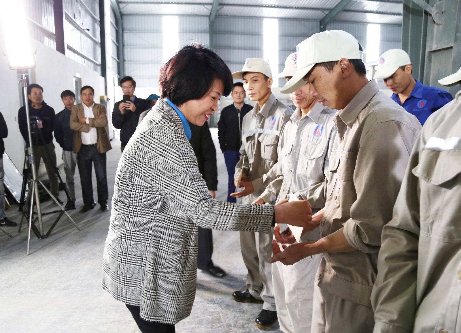 Chủ tịch Công đoàn xây dựng Việt Nam Nguyễn Thị Lệ Thủy động viên, thăm hỏi CBCNV nhà máy Bê tông khí Viglacera