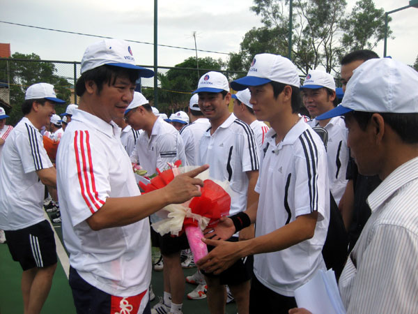 Lãnh đạo Tổng công ty tặng hoa động viên khuyến khích tinh thần thi đấu của các VĐV
