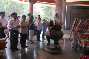Thắp hương tại Đài tưởng niệm các Thanh niên xung phong tại Ngã Ba Đồng Lộc