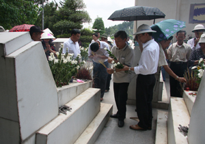 Thể hiện lòng thành kính đối với hương hồn 10 nữ anh hùng liệt sỹ Ngã Ba Đồng Lộc tại Khu mộ của các chị