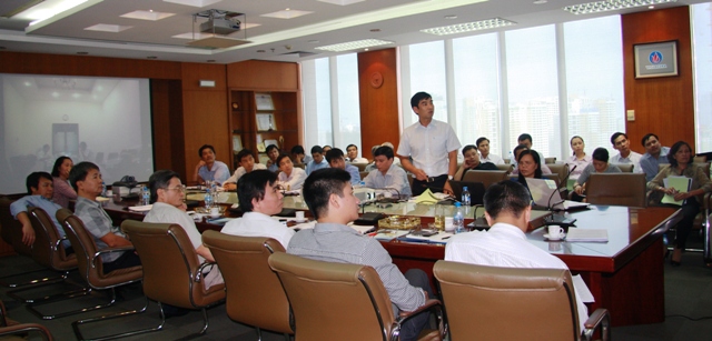 Phó TGĐ TCT Viglacera Nguyễn Minh Tuấn phát biểu tại Hội nghị giao ban quý III/2013 khối Sứ vệ sinh, Sen vòi và Thương mại