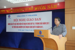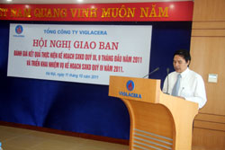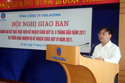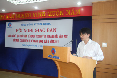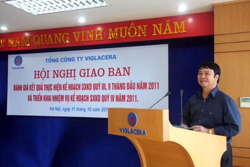 Phát biểu tại Hội nghị, ông Nguyễn Anh Tuấn đánh giá: Nhìn chung, kết quả hoạt động SXKD toàn Tổng công ty đạt được trong 9 tháng đầu năm rất đáng khích lệ, hầu hết các chỉ tiêu chính đều đạt trên 75% kế hoạch năm. Tuy nhiên, để đạt được các mục tiêu kế hoạch năm 2011 thì nhiệm vụ còn lại của quý IV là rất nặng nề, đòi hỏi mỗi cá nhân, đơn vị phải nghiêm túc đúc rút kinh nghiệm những việc đã làm được, những việc còn tồn tại để từ đó đề ra các giải pháp linh hoạt, đúng và trúng, điều hành quyết liệt nhằm duy trì ổn định hiệu quả SXKD của các đơn vị. Đặc biệt, trong quý IV/2011 cần tập trung chỉ đạo hoạt động SXKD của các đơn vị trong nhóm kính, gạch ốp lát, sứ vệ sinh – sen vòi, Công ty CP Khoáng sản VIGLACERA, Công ty CP Nguyên liệu VIGLACERA và Công ty CP Bê tông khí VIGLACERA, là những đơn vị đang gặp nhiều khó khăn để đảm bảo hiệu quả SXKD cả năm 2011.