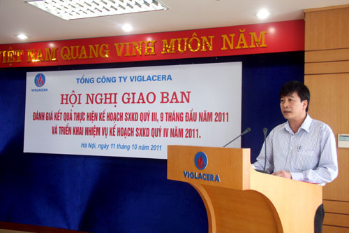 Sáng 11/10/2011, tại trụ sở TCT VIGLACERA đã diễn ra Hội nghị giao ban đánh giá kết quả thực hiện kế hoạch SXKD quý III, 9 tháng đầu năm 2011 và triển khai nhiệm vụ kế hoạch SXKD doanh quý IV năm 2011, chào mừng Ngày Doanh nhân Việt Nam - 13/10.