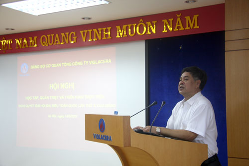 Thực hiện Kế hoạch số 12-KH/QU ngày 25/5/2011 của Quận ủy Cầu Giấy về việc học tập, quán triệt và triển khai thực hiện Nghị quyết Đại hội đại biểu toàn quốc lần thứ XI của Đảng, sáng 14/9/2011 tại Hà Nội, Đảng ủy Cơ quan Tổng công ty VIGLACERA tổ chức Hội nghị học tập, quán triệt và triển khai thực hiện Nghị quyết Đại hội đại biểu toàn quốc lần thứ XI của Đảng.