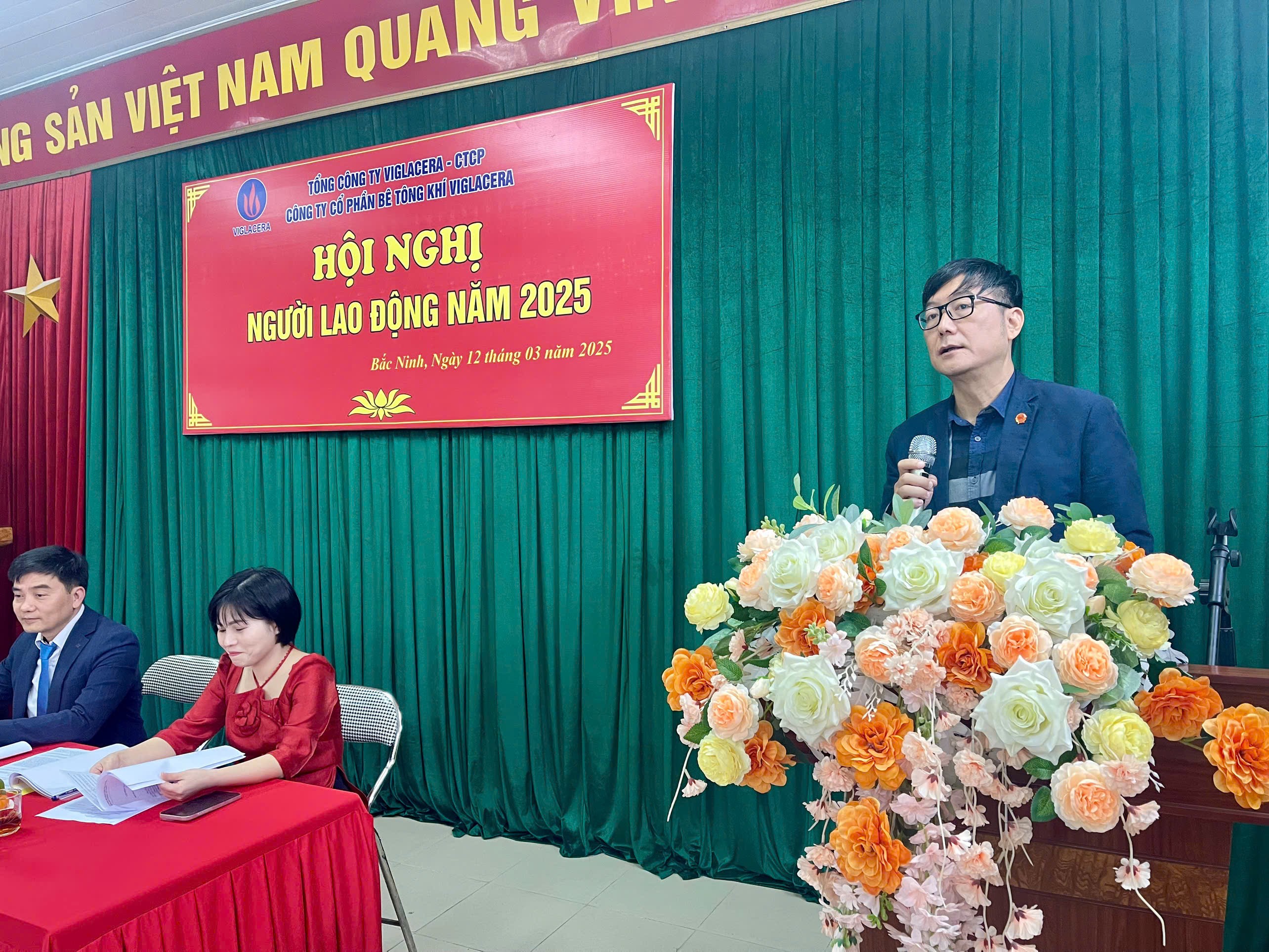 Hội nghị giao cho Ban Giám đốc phối kết hợp với BCH Công đoàn Công ty, căn cứ Nghị quyết của Hội nghị, xây dựng chương trình, kế hoạch công tác cụ thể để triển khai thực hiện hiệu quả Nghị quyết Hội nghị Người lao động Công ty cổ phần Bê tông khí Viglacera năm 2025.