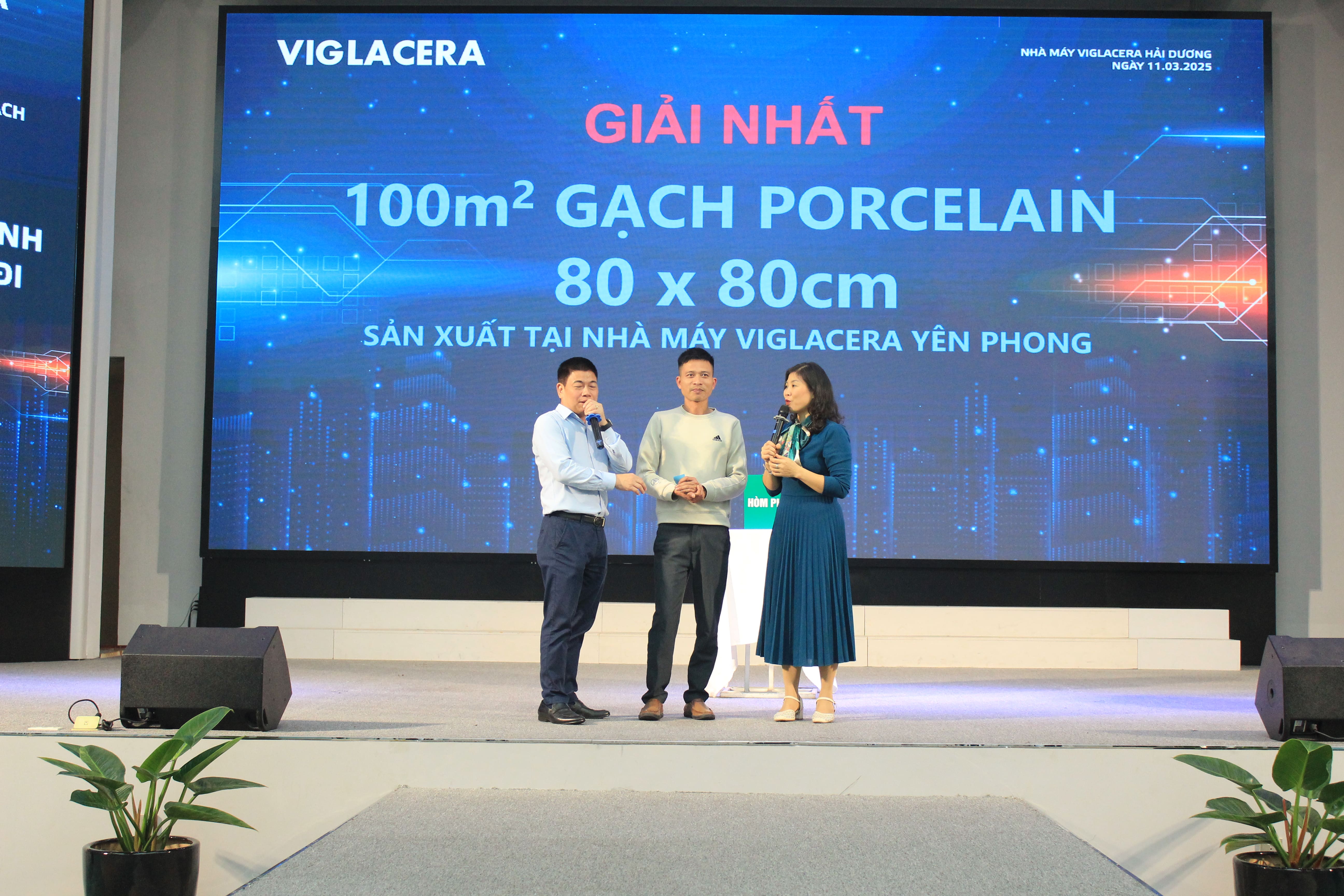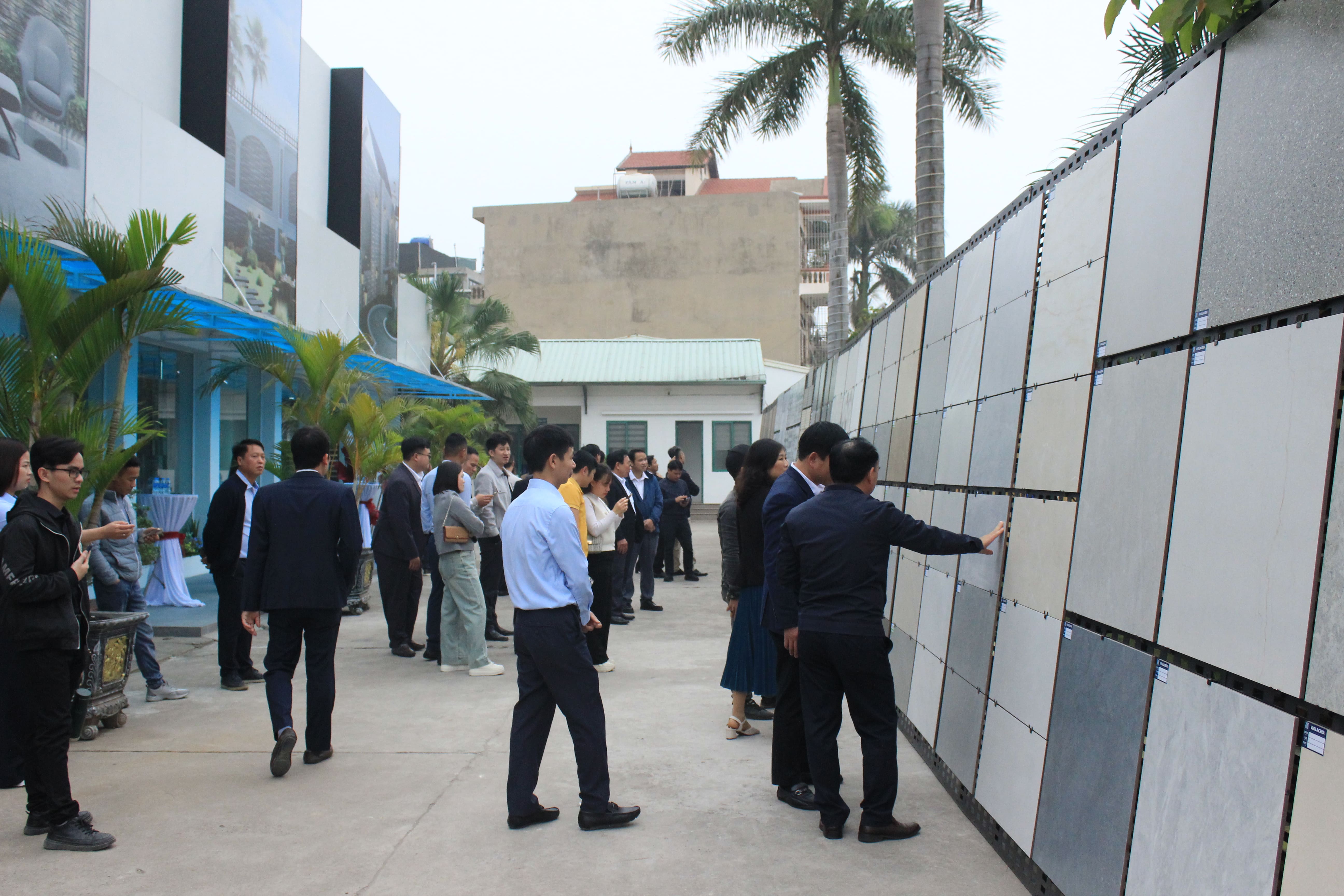 Trong khuôn khổ chương trình, các Nhà phân phối & Đại lý đã có thời gian tham quan dây chuyền sản xuất tại nhà máy Viglacera Hải Dương và khu trưng bày sản phẩm gạch ốp lát mới của Viglacera. Đây không chỉ là hoạt động trải nghiệm sản phẩm thực tế mà còn là cơ hội kết nối, chia sẻ về cơ cấu các sản phẩm mới như Gạch bông, Gạch thẻ, Gạch khổ lớn….và một số chính sách hỗ trợ khách hàng, nâng cao kiến thức về sản phẩm, tạo điều kiện thuận lợi cho hoạt động kinh doanh của Viglacera trong năm 2025.