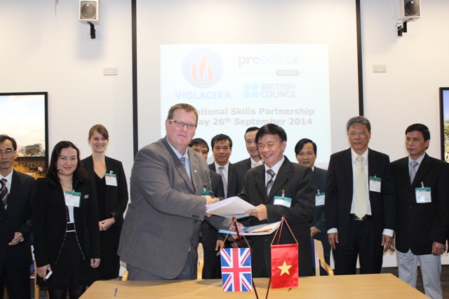 Trường Cao đẳng nghề Viglacera là đơn vị trực thuộc Tổng công ty Viglacera - Công ty cổ phần, là nơi duy nhất đào tạo chuyên sâu nghề sản xuất vật liệu xây dựng tại Việt Nam. Với mong muốn trở thành Trường Đại học đào tạo nghề chủ chốt đạt các tiêu chuẩn đào tạo của Vương quốc Anh cũng như các tiêu chuẩn quốc tế đầu tiên tại Việt Nam và cung ứng cho doanh nghiệp những lao động chất lượng cao, từ tháng 5-2014, Trường và Proskills đã ký biên bản ghi nhớ về “Tăng cường đào tạo và phát triển kỹ năng nghề theo tiêu chuẩn quốc tế trong lĩnh vực vật liệu xây dựng”, hợp đồng nguyên tắc về “Xây dựng chương trình đào tạo nghề theo tiêu chuẩn và chất lượng quốc tế”.