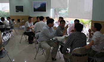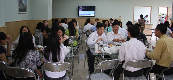 Nhà ăn ca rộng rãi của TCT đặt tại ngay tầng 1, Tòa nhà Viglacera rất thuận tiện cho việc đi lại, tiết kiệm thời gian nghỉ trưa cho người lao động.