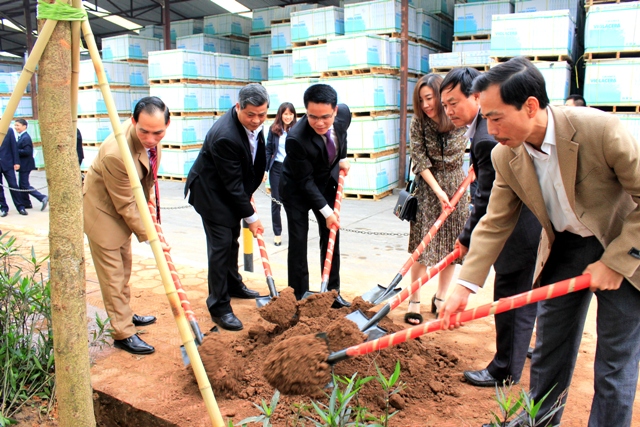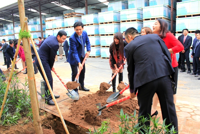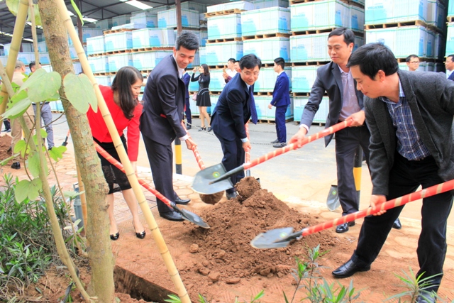 Ban lãnh đạo và khách mời cùng tham gia phát động lễ trồng cây tại khuôn viên Nhà máy Viglacera Tiên Sơn
