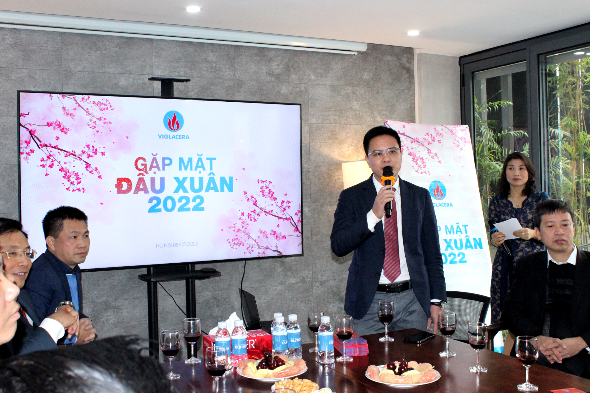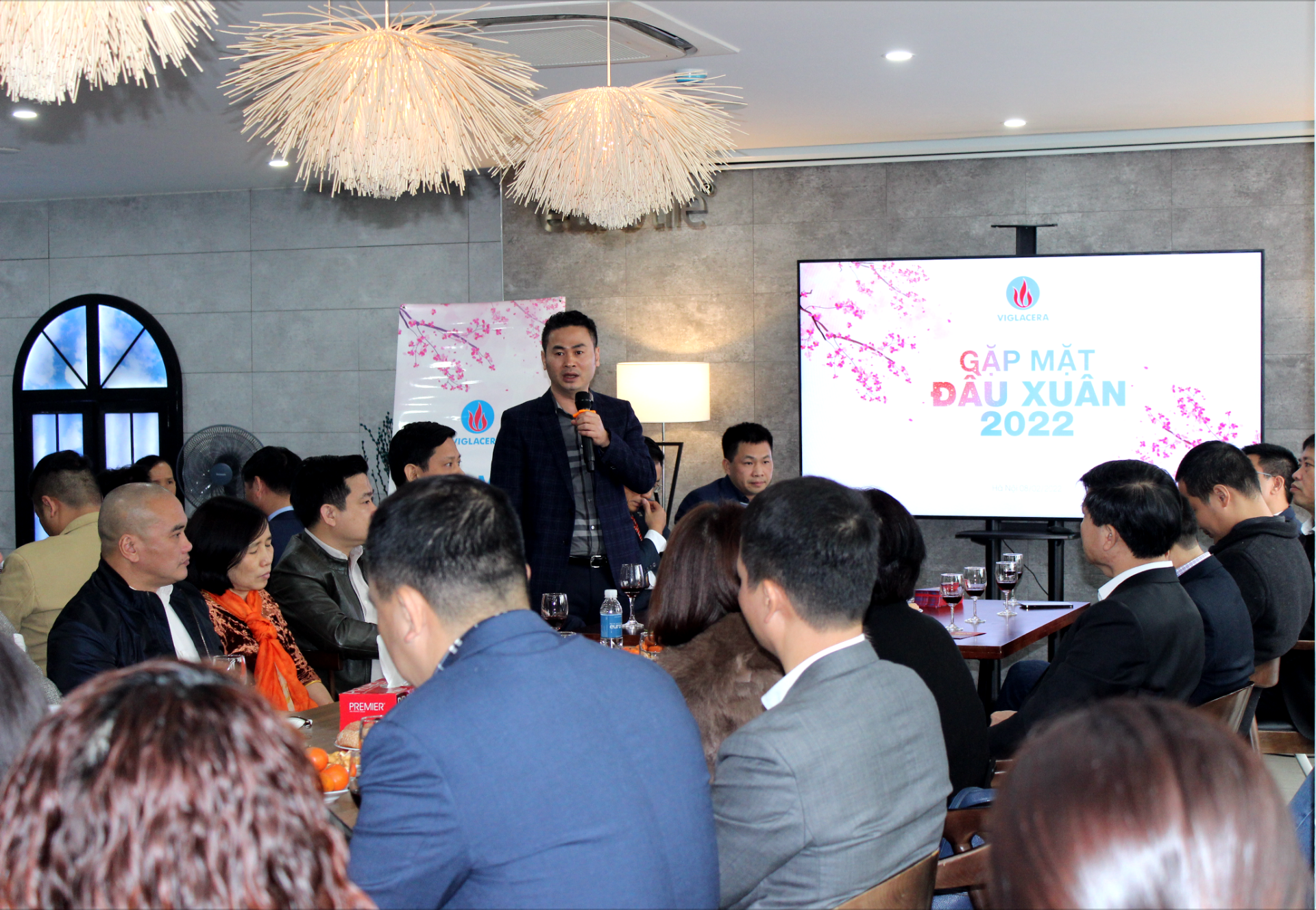 Phát biểu tại buổi gặp mặt, thay mặt Ban lãnh đạo điều hành Công ty, ông Phùng Việt Quang - Tổng giám đốc Công ty đã gửi lời chúc sức khỏe, lời chúc mừng năm mới tốt đẹp nhất đến các đại lý, đối tác, Ban Lãnh đạo, cán bộ chủ chốt và toàn thể CBNV Công ty. Trong năm 2021, Công ty Cổ phần Kinh doanh Gạch ốp lát Viglacera đã đã nỗ lực phấn đấu và đạt được nhiều kết quả quan trọng bất chấp sự ảnh hưởng của đại dịch Covid -19 khiến nhiều doanh nghiệp trong nước gặp khó khăn. Với việc Viglacera mua lại Nhà máy Bạch Mã và lọt top 20 doanh nghiệp sản xuất gạch ốp lát lớn nhất thế giới, Công ty cổ phần Kinh doanh Gạch ốp lát Viglacera đã tiếp tục định hình và hoàn thiện chiến lược phát triển sản phẩm và đặc biệt là chiến lược phát triển con người với tầm nhìn và mục tiêu dài hạn.