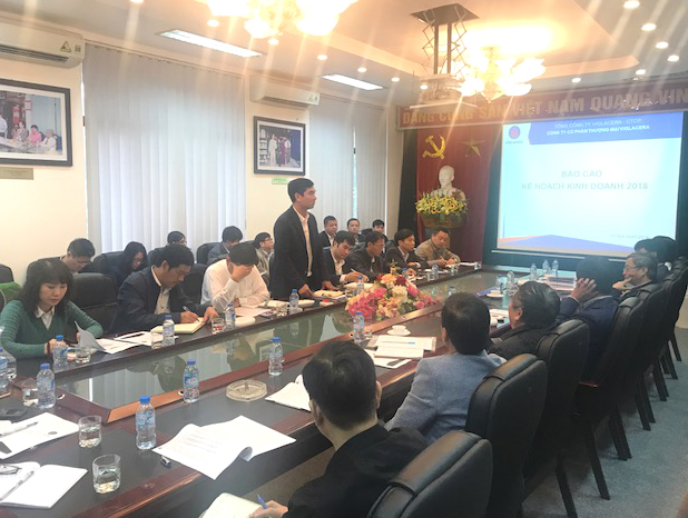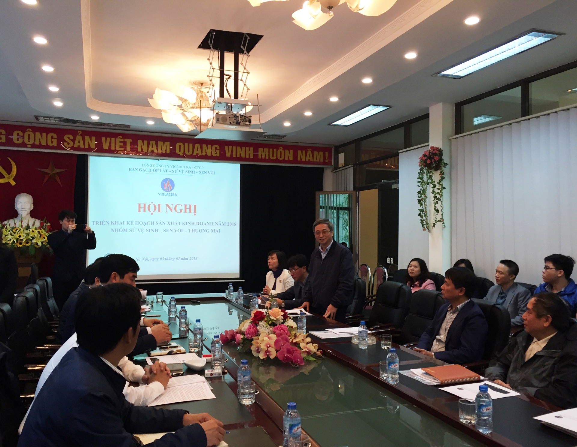 Đến dự Hội nghị có Ban lãnh đạo Tổng công ty, các Giám đốc và cán bộ chủ chốt tại các đơn vị sản xuất, kinh doanh trong Khối Sứ vệ sinh - sen vòi Viglacera bàn về việc triển khai chi tiết Kế hoạch SXKD năm 2018.