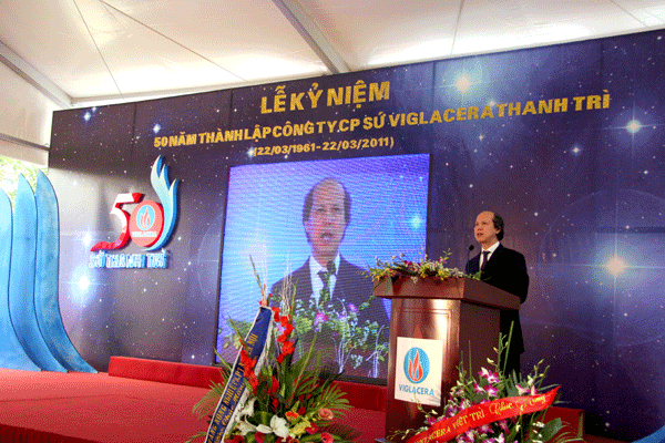 Phát biểu tại buổi lễ, Thứ trưởng Bộ Xây dựng Nguyễn Trần Nam đã bày tỏ sự vui mừng trước những bước phát triển của Công ty. Thứ trưởng Nguyễn Trần Nam cho rằng, bề dày 50 năm đã chứng minh sức sống và sự vươn lên mạnh mẽ của thương hiệu Viglacera Thanh Trì. Sản phẩm do Công ty sản xuất ra luôn có hàm lượng công nghệ cao, đảm bảo đúng tiêu chí uy tín – chất lượng. Thứ trưởng Nguyễn Trần Nam mong rằng, ban lãnh đạo Công ty Cổ phần Sứ Viglacera Thanh Trì hôm nay sẽ tiếp tục phát huy truyền thống được gây dựng từ các thế hệ cha ông, đưa Viglacera Thanh Trì lên tầm cao mới.