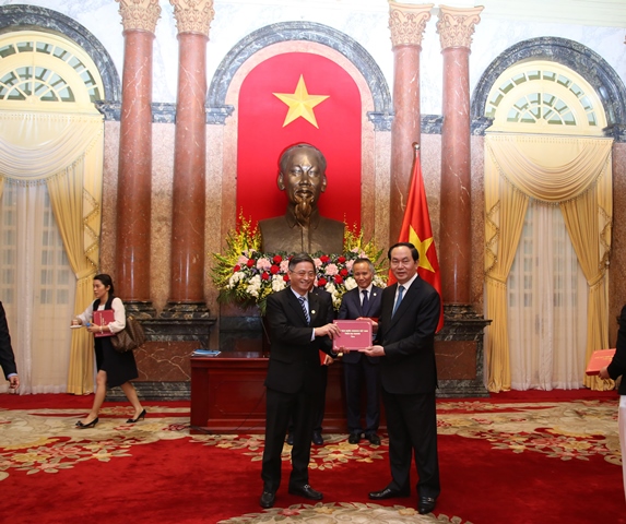 Trước khi buổi Lễ vinh danh "Thương hiệu Quốc gia" diễn ra, ông Nguyễn Minh Tuấn đại diện Tổng công ty Viglacera - CTCP đã tham dự buổi tiếp kiến Chủ tịch nước Trần Đại Quang tại Phủ Chủ tịch và được Chủ tịch nước chúc mừng, trao tặng logo Chủ tịch nước