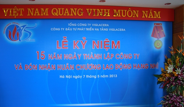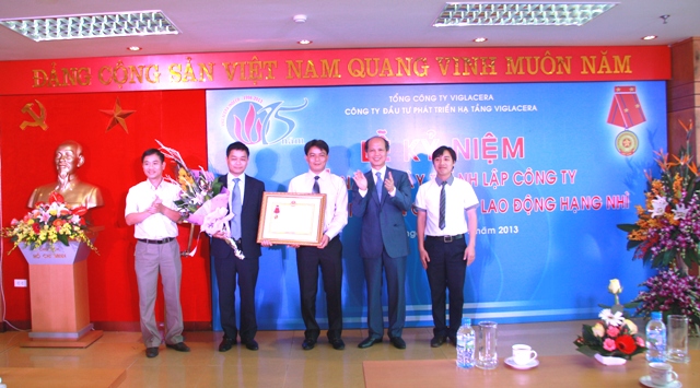 Ngày 07/05/3013, trong không khí sôi nổi nhân kỷ niệm 55 năm ngày truyền thống ngành Xây dựng, 59 năm chiến thắng Điện Biên Phủ, Tại trụ sở số 1, Đại lộ Thăng Long, Công ty Đầu tư Phát triển Hạ tầng Viglacera thuộc Tổng công ty Viglacera – Bộ Xây dựng đã long trọng tổ chức kỷ niệm 15 năm ngày thành lập Công ty (07/5/1998-07/5/2013) và lễ đón nhận Huân chương lao động hạng nhì.