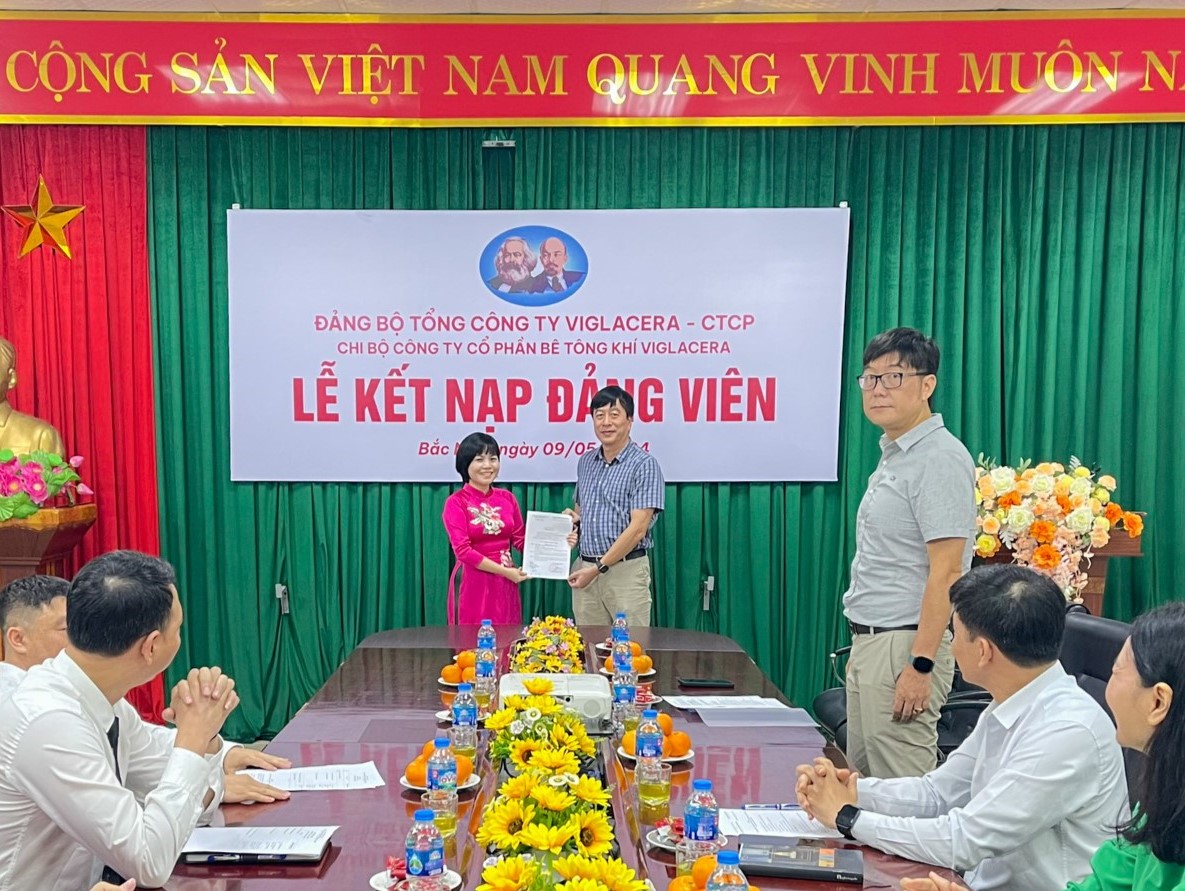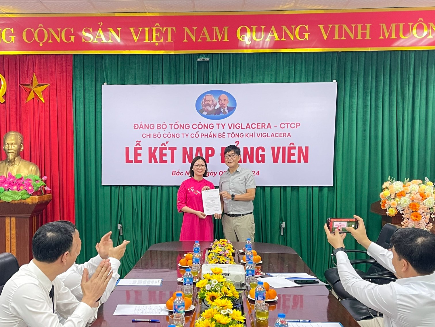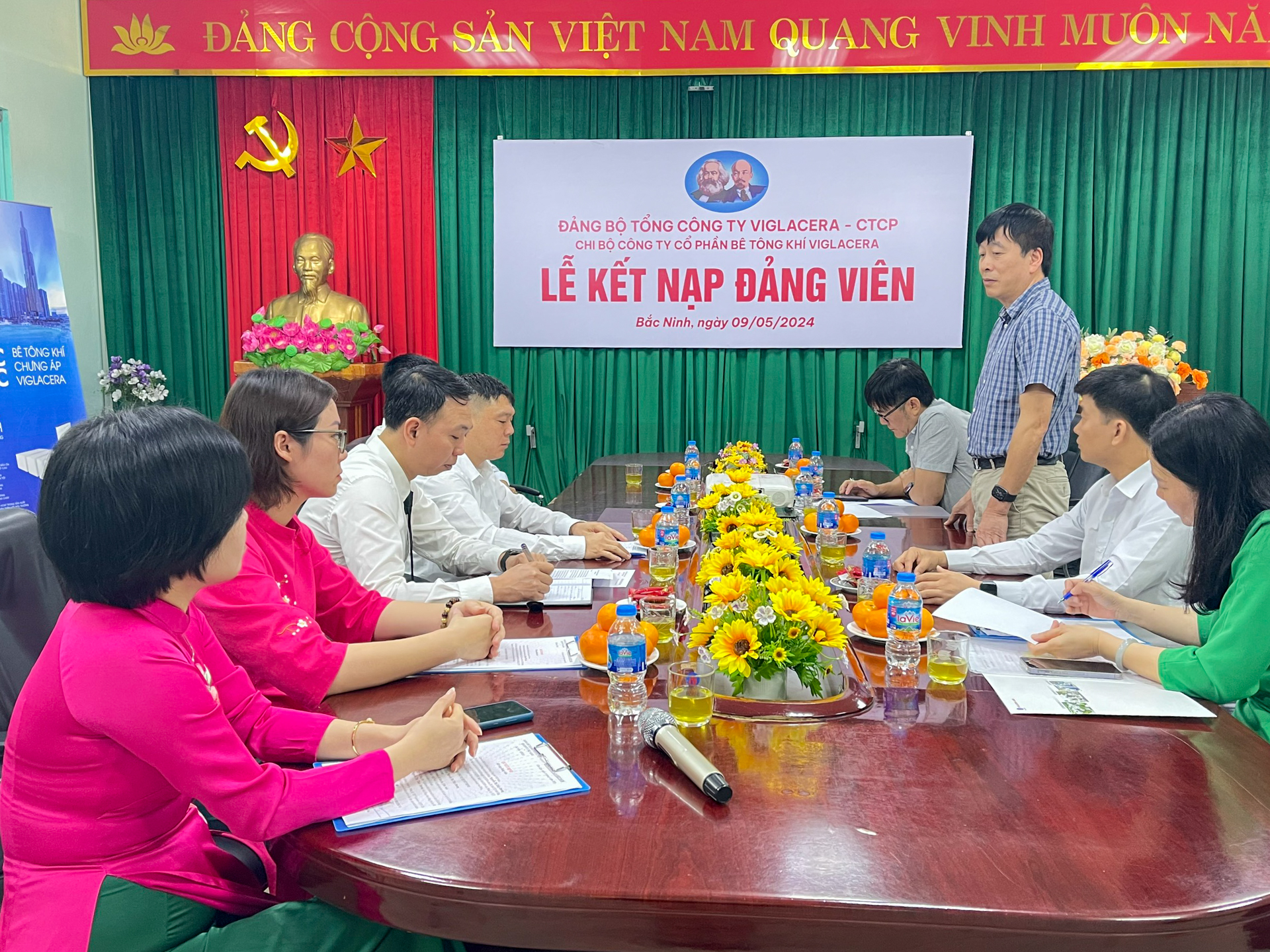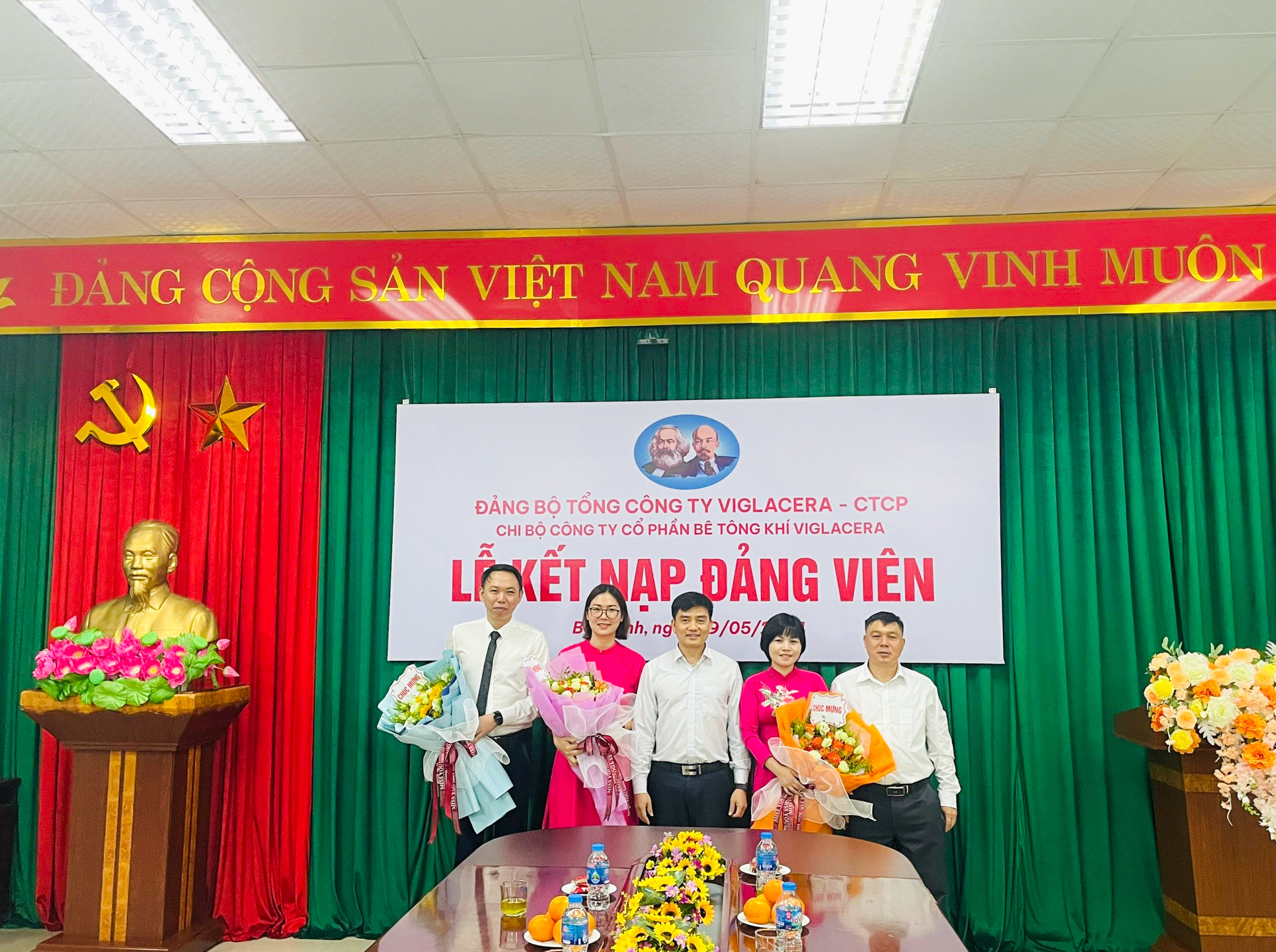 Nhân dịp cả nước hướng tới kỷ niệm 134 năm ngày sinh Chủ tịch Hồ Chí Minh (19/5/1890 – 19/5/2024), ngày 9/5/2024, Đảng ủy Tổng công ty Viglacera - CTCP cùng Chi bộ Công ty Cổ phần Bê tông khí Viglacera đã tổ chức Lễ kết nạp đảng viên mới cho 3 quần chúng tiêu biểu là các đồng chí Nguyễn Thị Thùy Dương, Ngô Văn Quyết và Phạm Thị Lân.