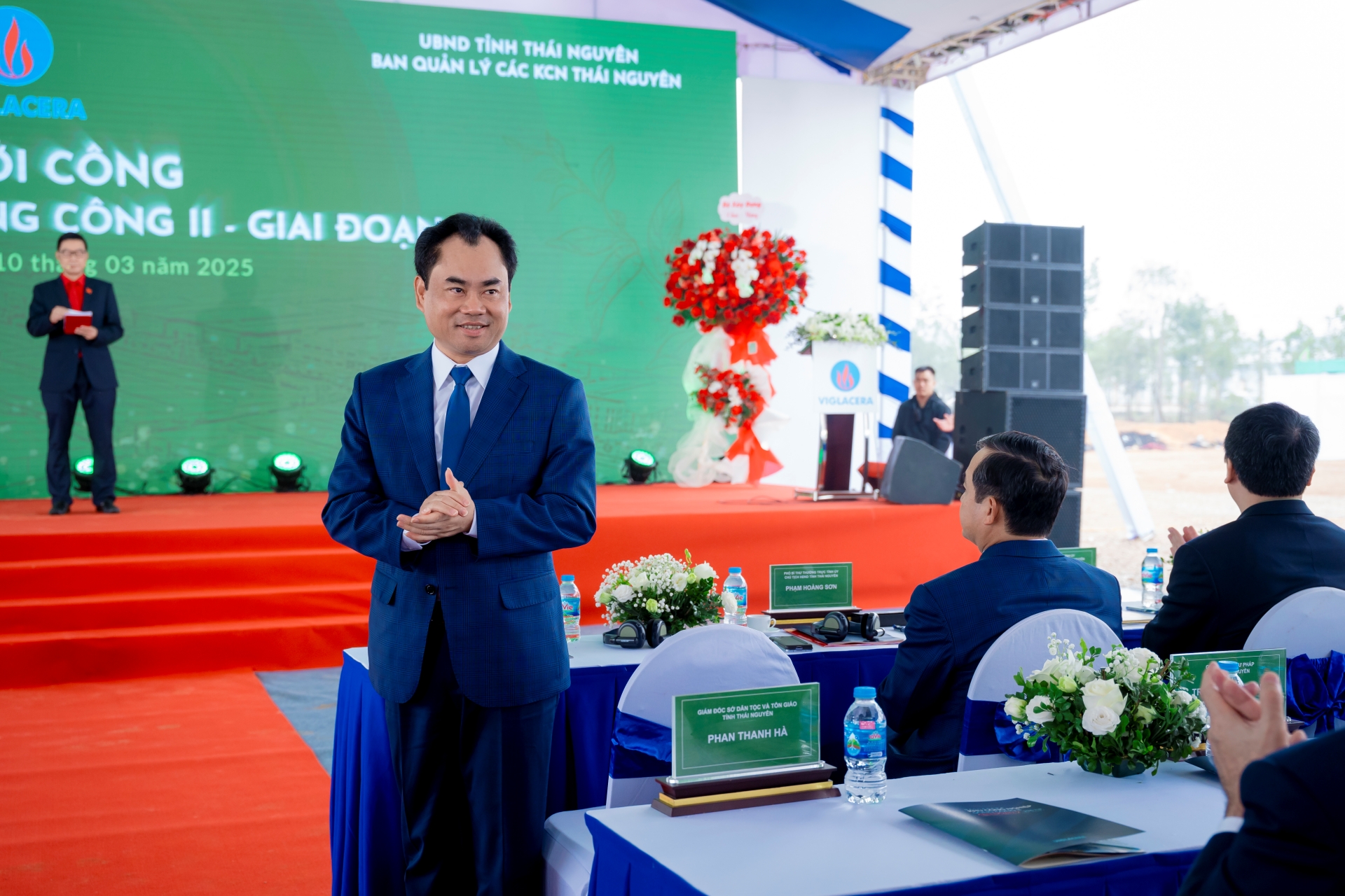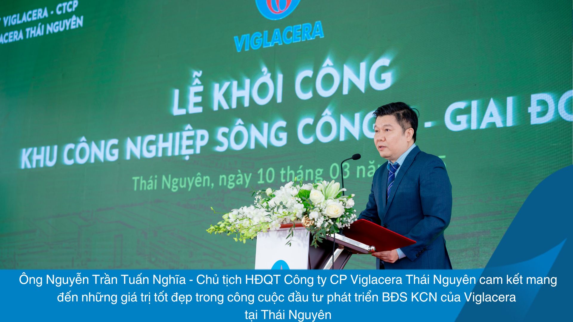 Trong phát biểu khai mạc, ông Nguyễn Trần Tuấn Nghĩa – Chủ tịch HĐQT Công ty CP Viglacera Thái Nguyên, chia sẻ: “Viglacera là doanh nghiệp hàng đầu Việt Nam trong sản xuất vật liệu xây dựng và đầu tư bất động sản. Viglacera hiện sở hữu 16 khu công nghiệp với gần 500 nhà đầu tư, tổng vốn đầu tư 20 tỷ USD và tạo ra 100.000 việc làm. Tại Thái Nguyên, chúng tôi triển khai KCN Sông Công II – Giai đoạn 2 và kiên định với hướng đầu tư một khu công nghiệp xanh, ưu tiên công nghệ cao, xứng đáng với vị trí chiến lược của Thành phố Sông Công. Mục tiêu hướng tới là lấy công nghiệp làm nền tảng kết nối các khu vực phát triển kinh tế lớn của miền Bắc bao gồm Hà Nội, Vĩnh Phúc, Bắc Ninh, Bắc Giang, Lạng Sơn và Hải Phòng”.