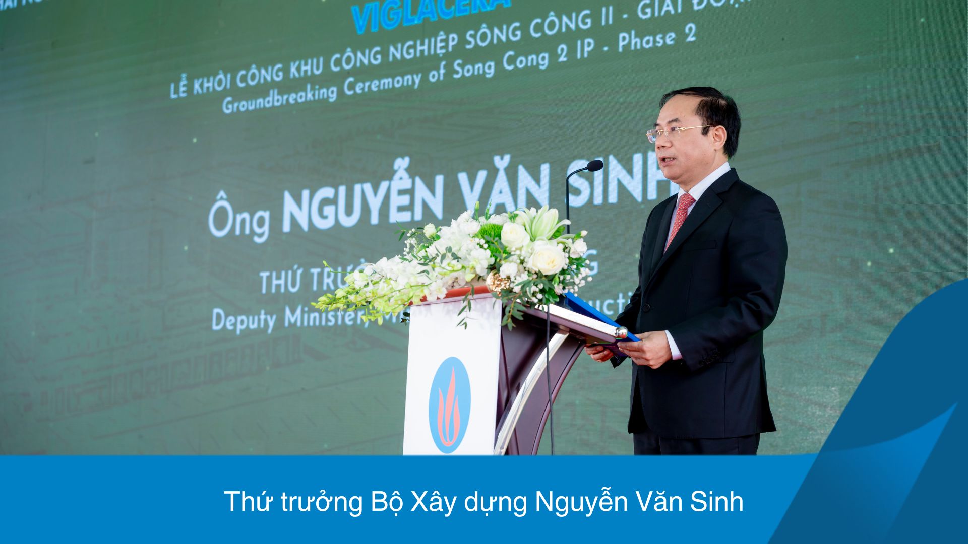 Đồng tình với chủ trương của tỉnh Thái Nguyên, trong phát biểu của mình, Thứ trưởng Bộ Xây dựng Nguyễn Văn Sinh khẳng định: “Công nghiệp hóa, hiện đại hóa là chủ trương xuyên suốt và nhất quán của Ðảng, Nhà nước ta trong quá trình xây dựng và bảo vệ Tổ quốc. Vì thế trên vai trò chủ đầu tư Dự án KCN Sông Công II - Giai đoạn 2, Viglacera cần xác định rõ phải hết sức nỗ lực phát huy và góp phần đưa Thái Nguyên thành trung tâm công nghiệp hiện đại, bền vững, ưu tiên các ngành công nghiệp xanh như điện tử, năng lượng tái tạo, góp phần tạo việc làm".