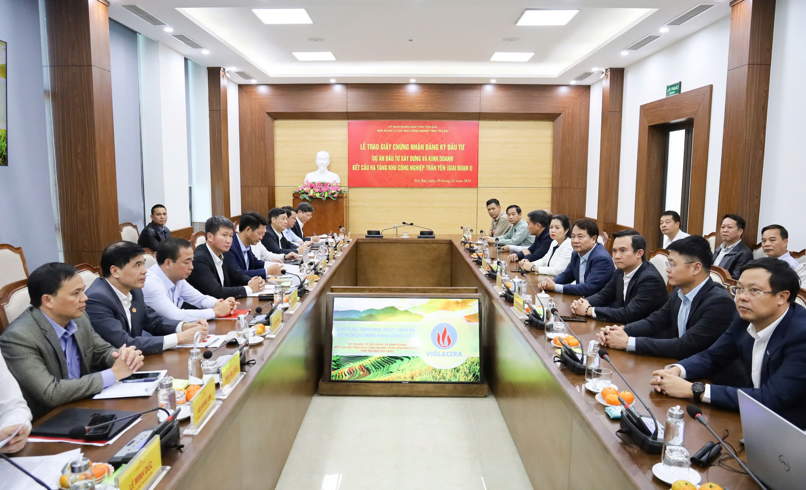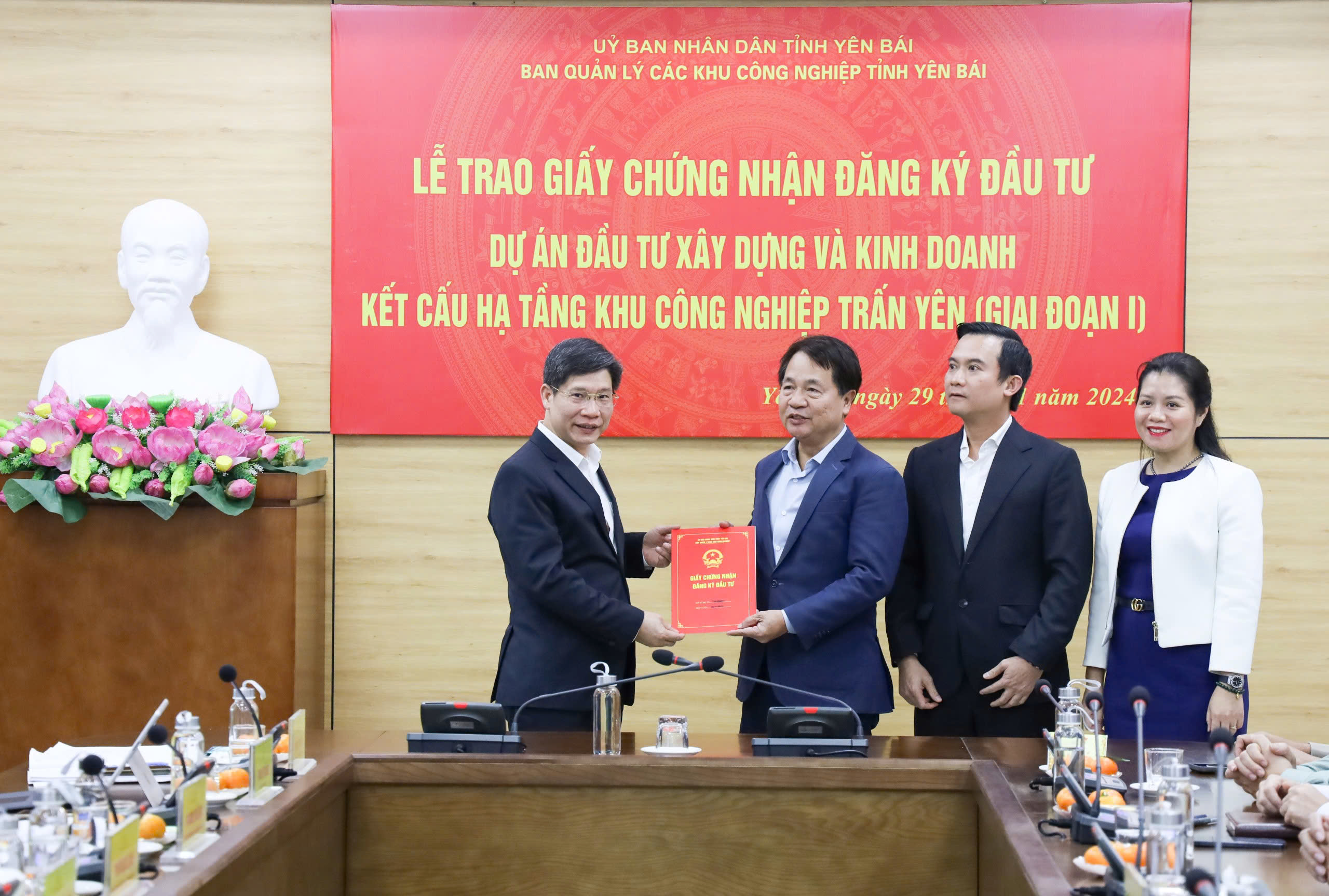 Lễ trao Giấy chứng nhận đăng ký đầu tư Dự án Đầu tư xây dựng và Kinh doanh kết cấu hạ tầng Khu công nghiệp Trấn Yên (giai đoạn 1)