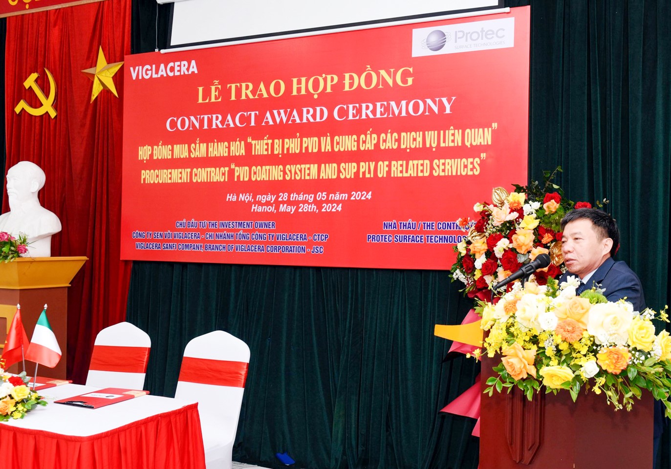 Ông Nguyễn Văn Tiến - Giám đốc Công ty Sen vòi Viglacera, đại diện cho chủ đầu tư, đã phát biểu mở đầu buổi lễ. Ông Nguyễn Văn Tiến nhấn mạnh: "Để bắt kịp xu hướng sản xuất hiện đại và đáp ứng nhu cầu ngày càng cao về chất lượng và thẩm mỹ, việc đầu tư công nghệ phủ PVD sẽ giúp tăng tuổi thọ sản phẩm, tăng khả năng chống mài mòn, với màu sắc thẩm mỹ cao, nhưng quan trọng nhất đó là công nghệ thân thiện với môi trường, đáp ứng được tiêu chuẩn ROHS của Châu Âu. Điều này không chỉ giúp nâng cao năng lực sản xuất mà còn tăng cường vị thế cạnh tranh của Viglacera trên thị trường.
