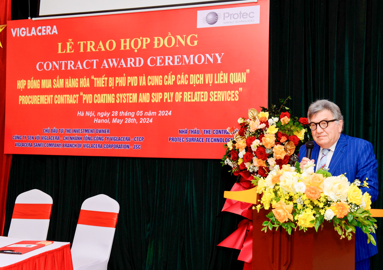 Ngày 28 tháng 5 năm 2024, tại trụ sở chính của Công ty Sen vòi Viglacera – Chi nhánh Tổng công ty Viglacera – CTCP, đã diễn ra Lễ trao hợp đồng gói thầu số 7 "Thiết bị phủ PVD" giữa Công ty Sen vòi Viglacera và Công ty Protec Surface Technologies S.r.l. Sự kiện này đánh dấu bước tiến quan trọng trong việc ứng dụng công nghệ mới và nâng cao năng lực sản xuất của Viglacera.