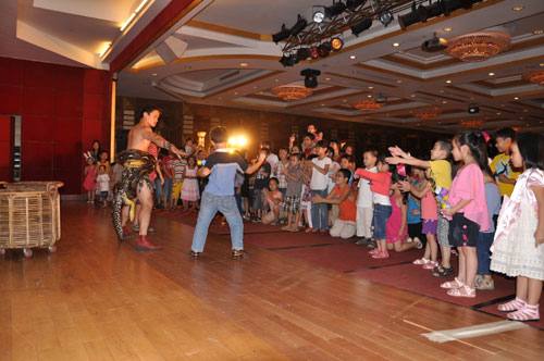Đêm Liên hoan thu hút sự tham gia của hàng trăm bạn nhỏ ở các lứa tuổi. Các em hào hứng tham gia nhiều trò chơi hấp dẫn và được thưởng thức các tiết mục văn nghệ, ảo thuật, xiếc thú đặc sắc…