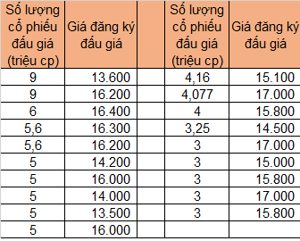 Giá đấu cao nhất tính tới thời điểm 10:50 là 17.300 đồng/cp. Trong khi đó, phần lớn các nhà đàu tư đang đặt giá 14.500 đồng/cp với tổng khối lượng đặt thầu tại mức giá này 22,2 triệu cổ phiếu.