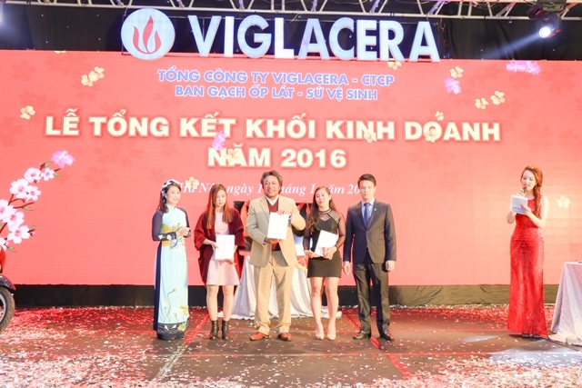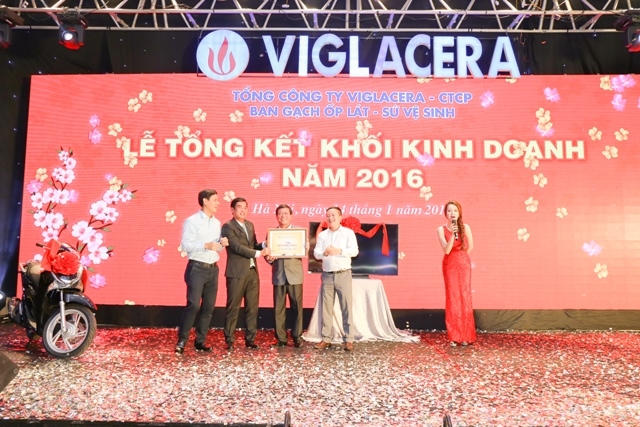 Nhằm ghi nhận và tôn vinh những đóng góp của các nhà phân phối trong năm qua, Ban tổ chức đã dành những khoảnh khắc quan trọng của Lễ tổng kết để tiến hành trao thưởng kỷ niệm chương và thưởng hoàn thành kế hoạch doanh thu năm 2016 cho các đại lý phân phối gạch ốp lát, sứ vệ sinh, sen vòi Viglacera. Đồng thời tổ chức chương trình quay số trúng thưởng và trao giải cho khách mời.