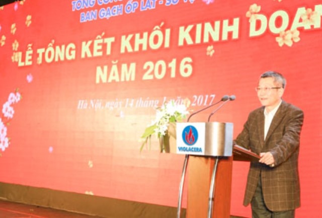 Thay mặt Lãnh đạo TCT Viglacera - CTCP, ông Nguyễn Minh Tuấn - Phó Tổng giám đốc đã chúc mừng các đơn vị trong Ban Gạch ốp lát - Sứ vệ sinh hoàn thành xuất sắc nhiệm vụ của năm 2016, đồng thời ghi nhận sự ủng hộ, gắn bó của hệ thống đại lý phân phối - những “cánh tay nối dài’ của Viglacera đã giúp Tổng công ty cạnh tranh một cách thắng lợi, vượt qua những khó khăn trên thị trường và để lại những dấu ấn phát triển rất tích cực.