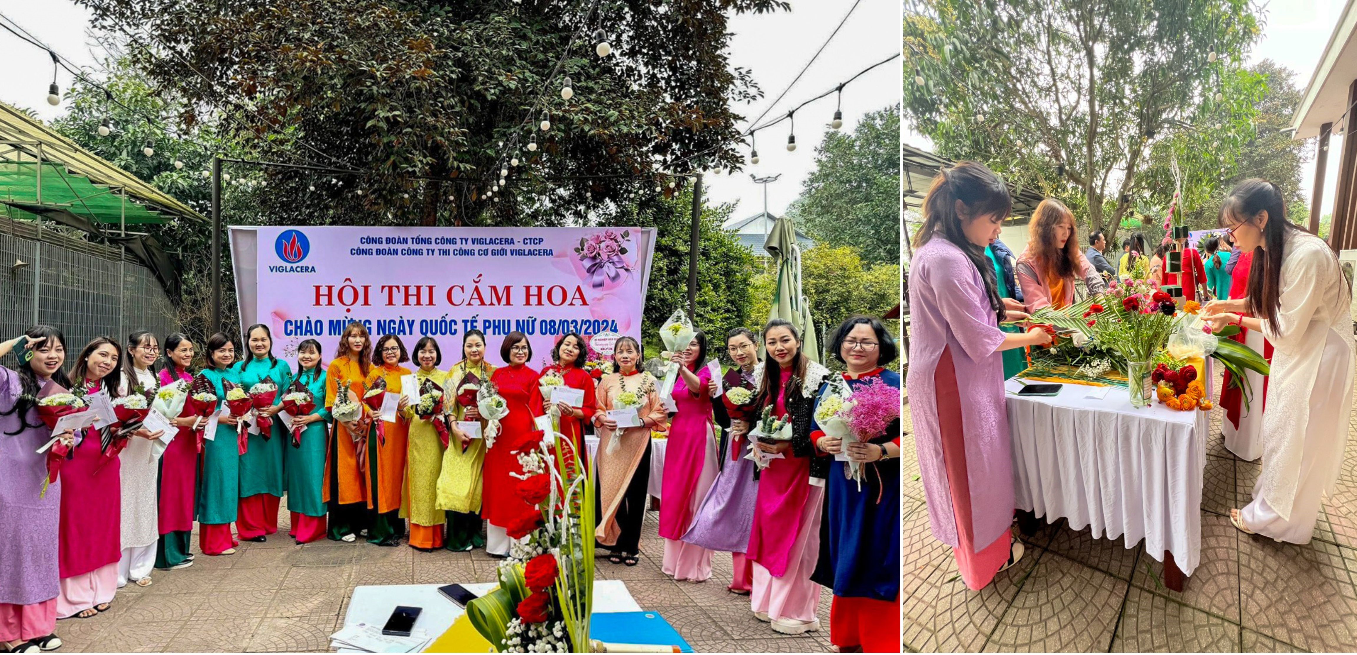Tại Công ty Thi công cơ giới Viglacera, Hội thi Cắm hoa đã trở thành tâm điểm thu hút sự tham gia của chị em cũng như sự quan tâm động viên cổ vũ của cánh mày râu.