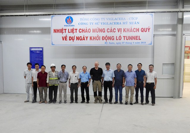 Đến dự và kiểm tra, đánh giá công tác khởi động Lò Tunnel tại Nhà máy Sứ Viglacera Mỹ Xuân có Chủ tịch HĐQT TCT Luyện Công Minh, Phó Tổng giám đốc TCT Nguyễn Minh Tuấn, Phó Tổng giám đốc TCT Nguyễn Anh Tuấn cùng Giám đốc Các đơn vị Thành viên nhóm Sứ vệ sinh trực thuộc TCT Viglacera - CTCP.