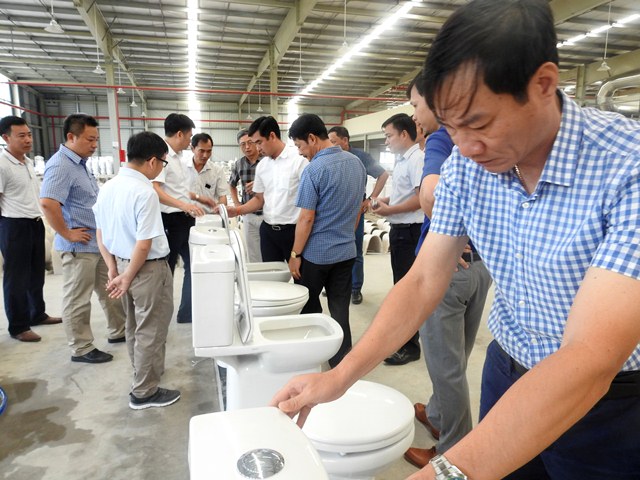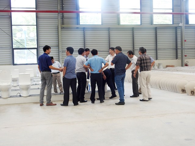 Đoàn Lãnh đạo Tổng công ty và các bộ phận chuyên môn kiểm tra sản phẩm sản xuất thử tại Nhà máy Sứ Viglacera Mỹ Xuân