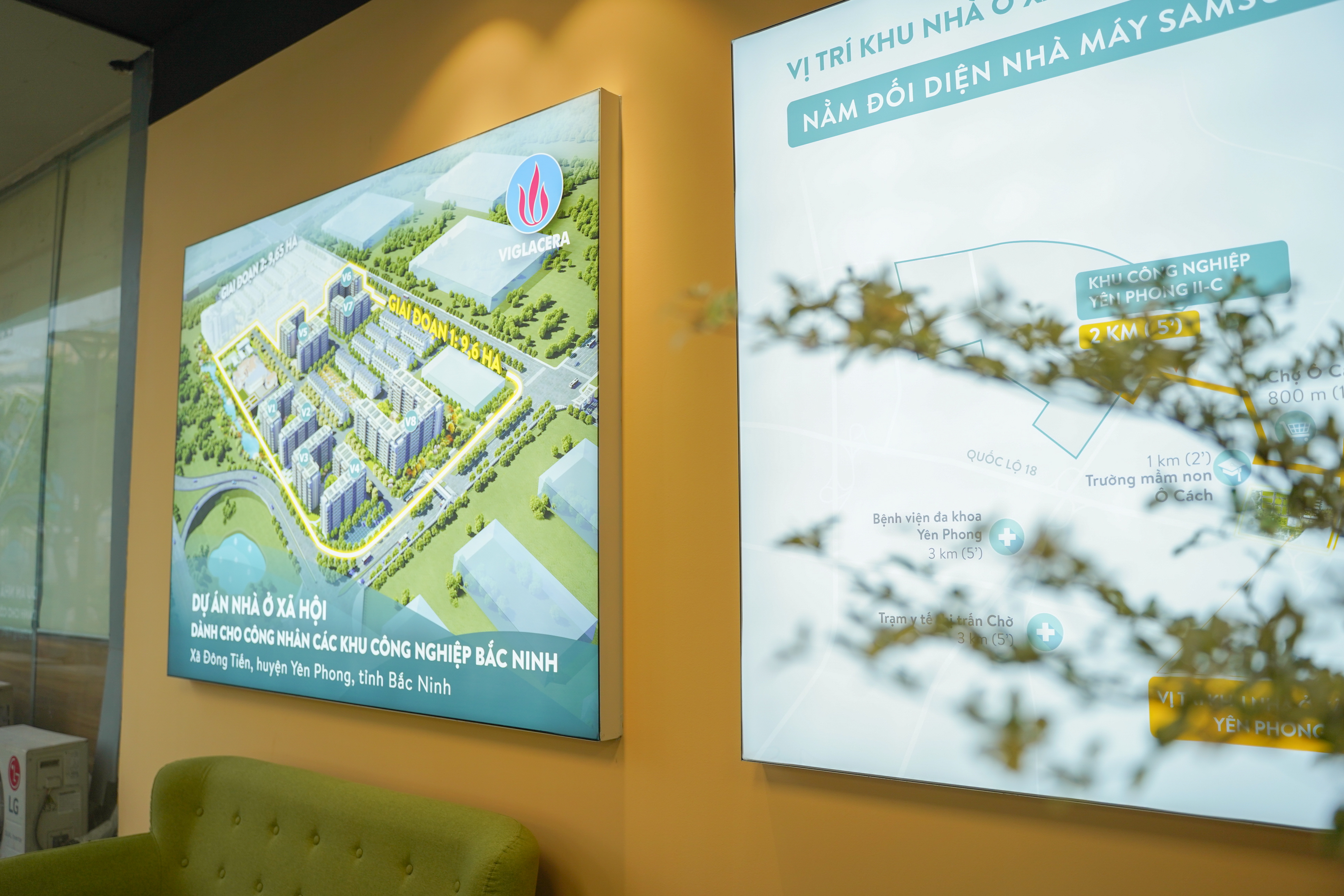 Bên cạnh đó, tại đây, các thông tin về Dự án nhà ở xã hội, nhà ở công nhân được chủ đầu tư Viglacera giới thiệu, tư vấn trực tiếp tới khách hàng sẽ đảm bảo công khai và minh bạch nhất.