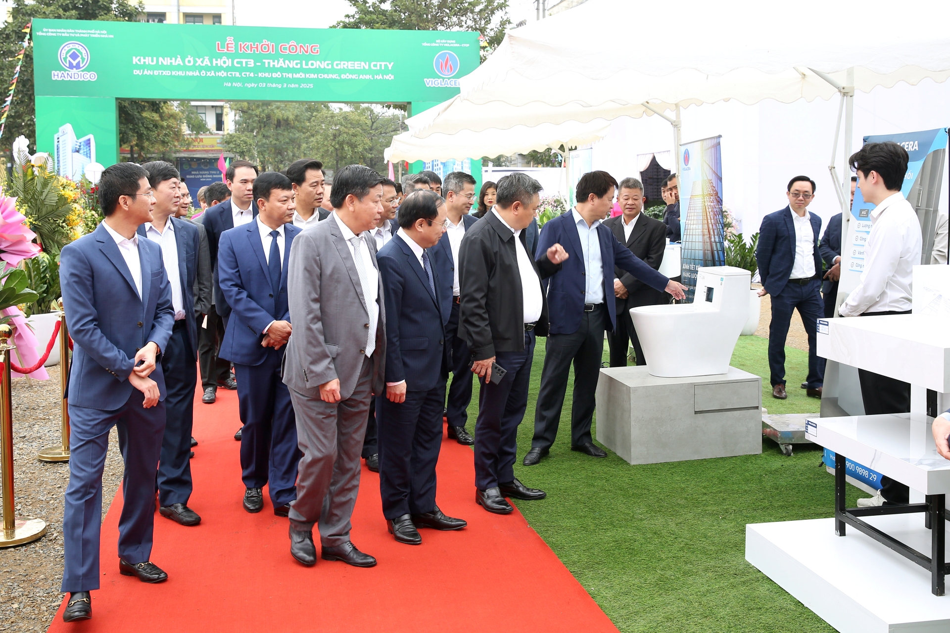 Lãnh đạo Viglacera và các đơn vị thành viên đã giới thiệu trước các vị lãnh đạo những chủng loại VLXD được Tổng công ty dành nhiều tâm huyết đầu tư nghiên cứu và sản xuất. Đây đều là vật liệu được sản xuất theo tiêu chí tiết kiệm năng lượng và nước sinh hoạt cho người sử dụng.