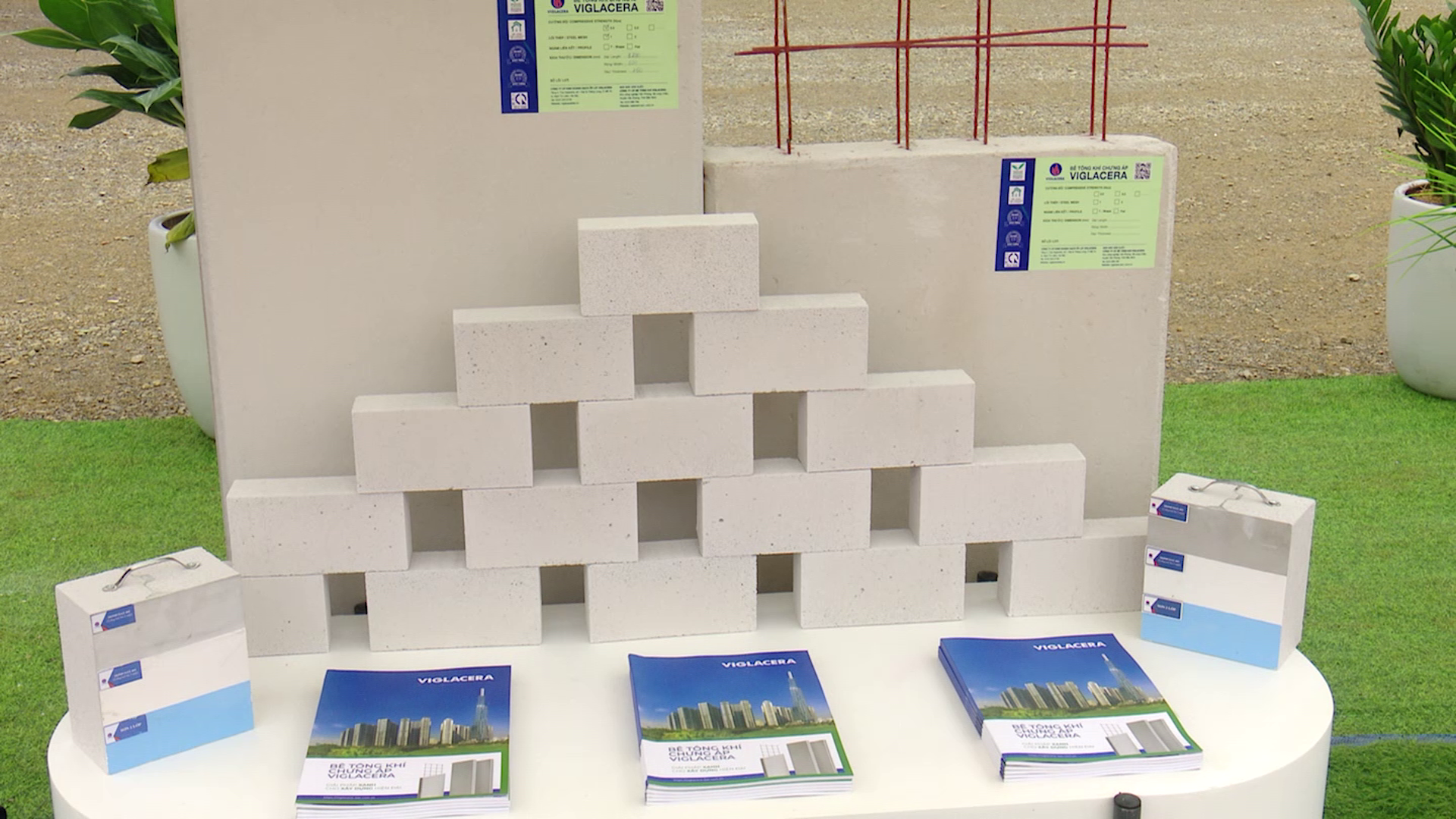 Sản phẩm bê tông khí chưng áp được trưng bày tại lễ khởi công