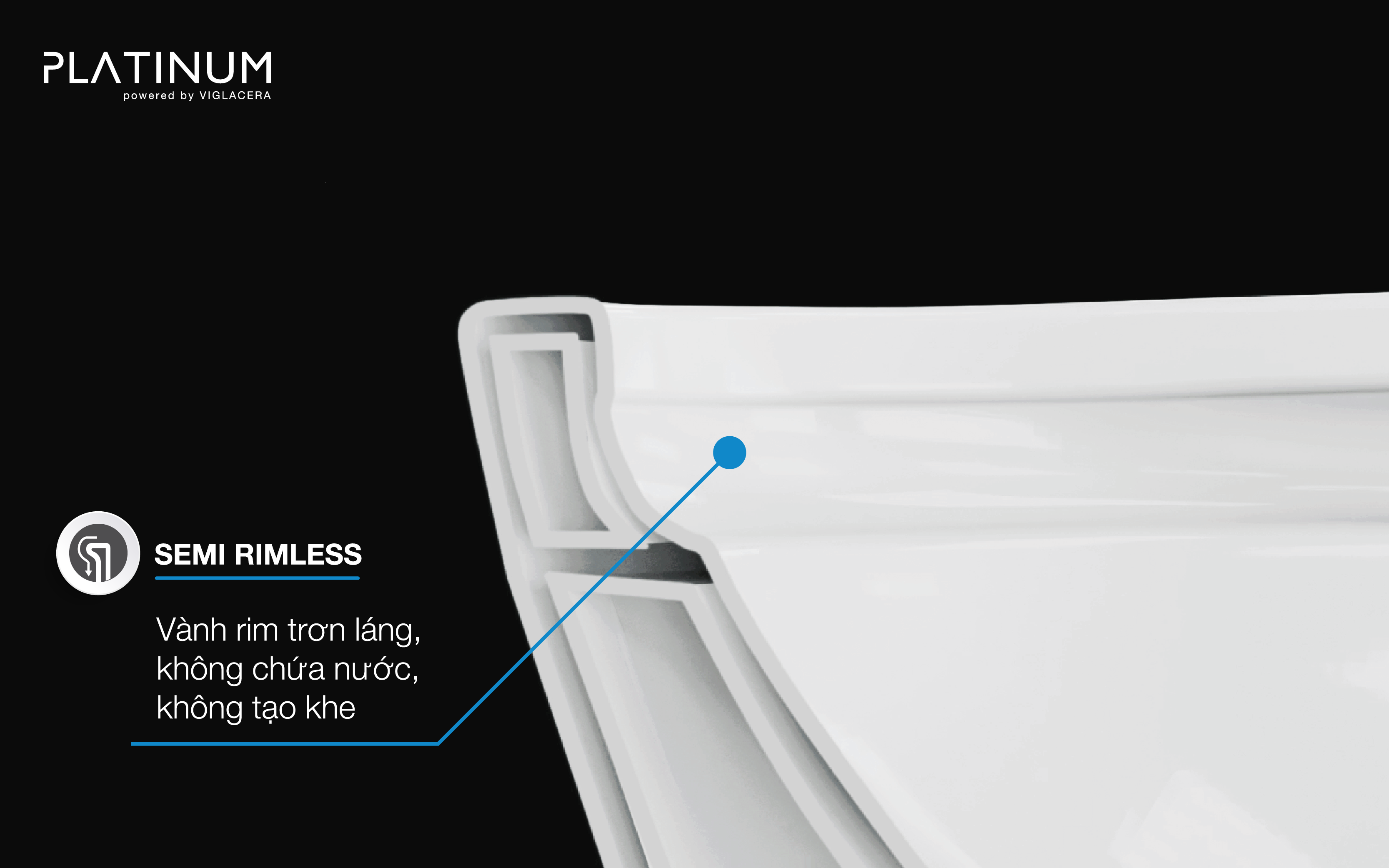 Semi Rimless là công nghệ xả với thiết kế vành rim tiên tiến, trơn láng, không chứa nước, không tạo khe. Đây là nỗ lực cải tiến của Viglacera trên các thiết bị vệ sinh, giúp ngăn ngừa vi khuẩn sinh sôi, hạn chế mùi hôi và giúp người dùng dễ dàng vệ sinh lau chùi.