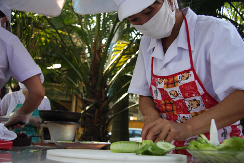 7h30 phút sáng, 28 đội thi đã có mặt tại Trường Cao đẳng nghề VIGLACERA để nhận nguyên vật liệu để chế biến món ăn: