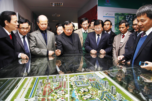 Bí thư Thành ủy Hà Nội Phạm Quang Nghị và Bộ trưởng BXD Trịnh Đình Dũng kiểm tra nhà ở xã hội khu đô thị Đặng Xá