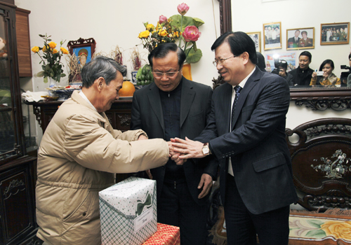 Bí thư Thành ủy Phạm Quang Nghị và Bộ trưởng BXD Trịnh Đình Dũng đã đến thăm, tặng quà gia đình ông Nguyễn Hiền ở phòng 309 nhà A3 D1