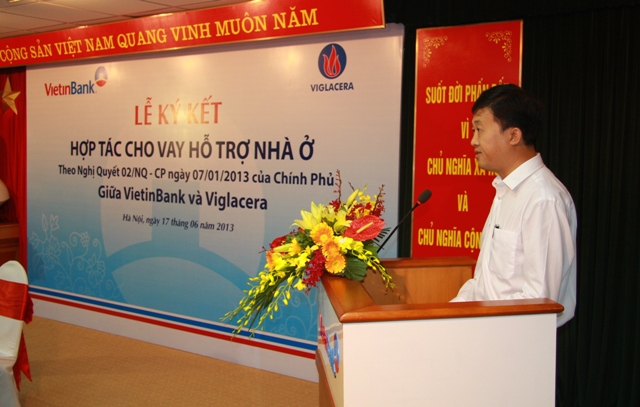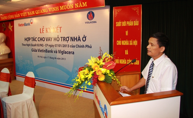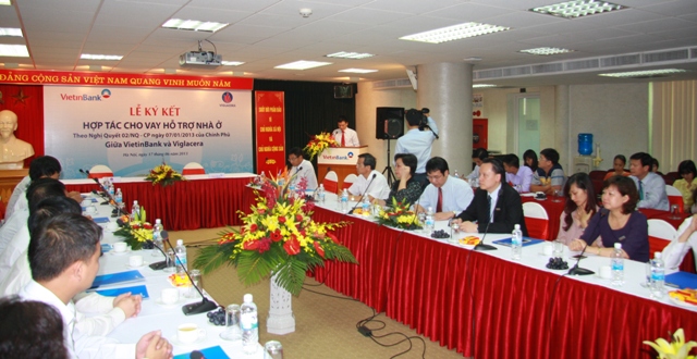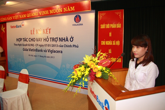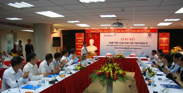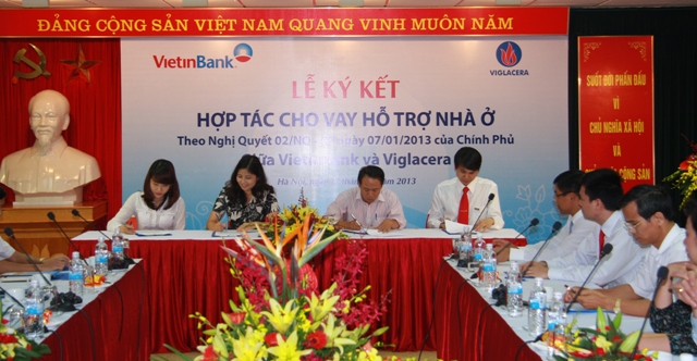Ngày 17/6/2013, tại trụ sở VietinBank số 108 Trần Hưng Đạo, Ngân hàng TMCP Công thương Việt Nam(VietinBank) và Viglacera đã tổ chức Lễ ký kết thỏa thuận hợp tác cho vay hỗ trợ nhà ở tại các dự án của Viglacera theo chủ trương tại Thông tư số 11/2013/TT-NHNN ngày 15/5/2013 của NHNN quy định về cho vay hỗ trợ nhà ở theo Nghị quyết số 02/NQ-CP ngày 7/1/2013 của Chính phủ do Thống đốc Ngân hàng Nhà nước Việt Nam ban hành; Thông tư số 07/2013/TT-BXD ngày 15/5/2013 hướng dẫn việc xác định đối tượng và điều kiện vay hỗ trợ nhà ở theo Nghị quyết số 02/NQ-CP do Bộ Xây dựng ban hành. Cũng tại Lễ ký kết này VietinBank cũng đã tổ chức ký kết Hợp đồng cho vay vốn với một số khách hàng cá nhân đang mua nhà tại các dự án của Viglacera, đây có thể nói là những khách hàng đầu tiên được hưởng ưu đãi trực tiếp từ gói tín dụng 30,000 tỷ hỗ trợ phát triển nhà ở theo Nghị quyết số 02/NQ-CP của Chính Phủ.