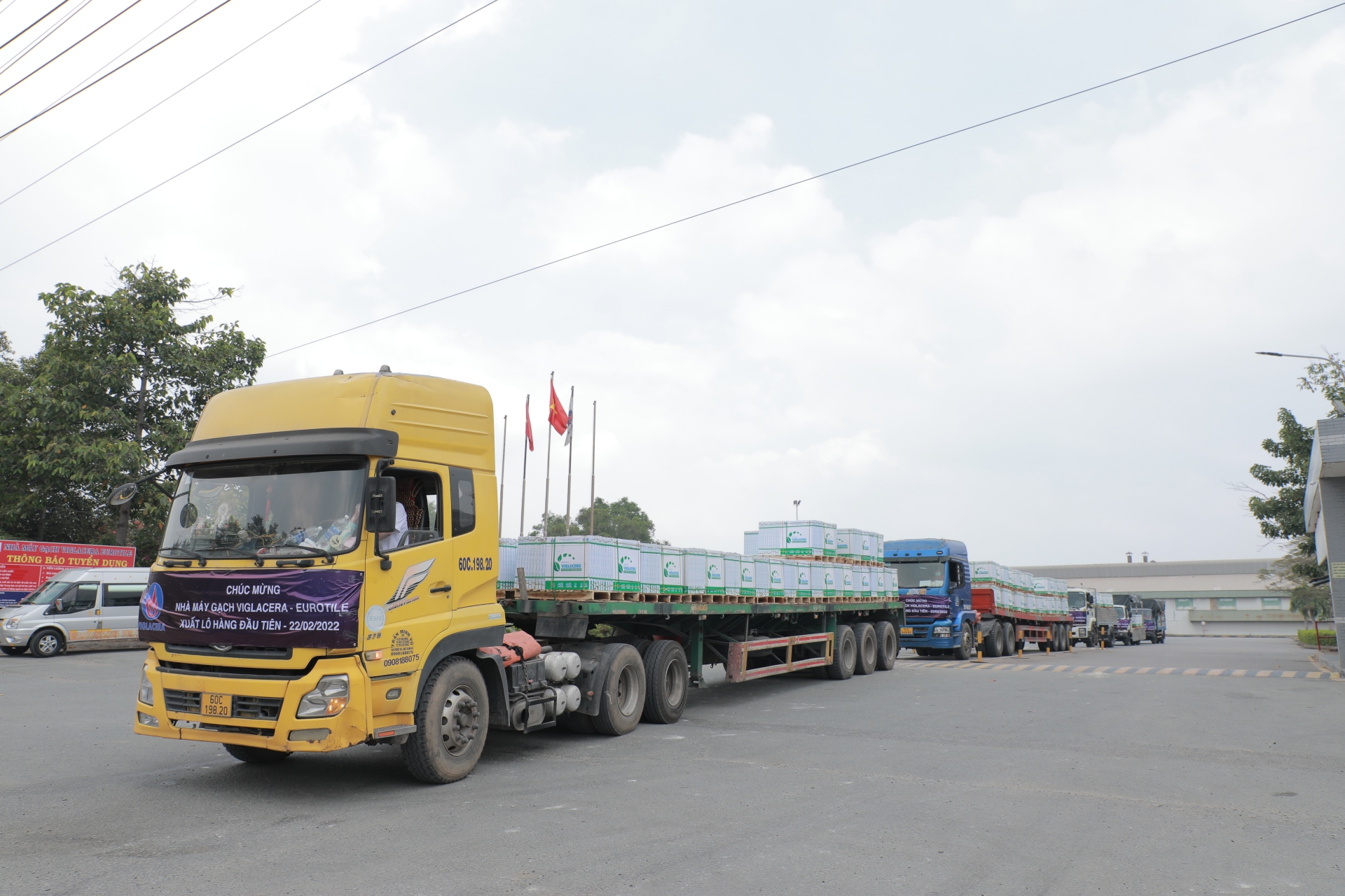 Chỉ sau hai tuần chính thức đi vào sản xuất, đúng 8h sáng ngày 22/02/2022, Công ty TNHH MTV Trang Hậu Phương là đại lý bốc hàng đầu tiên tại Nhà máy Gạch Viglacera - Eurotile. Trong sáng cùng ngày, nhiều đại lý tại Thành phố Hồ Chí Minh đã tham dự lễ xuất hàng được tổ chức trang trọng tại Nhà máy. Theo báo cáo bán hàng nhanh, dự kiến trong ngày 22/02/2022, Nhà máy Gạch Viglacera - Eurotile đã xuất hàng chục nghìn mét vuông gạch ốp lát cho thị trường Miền Nam cho thấy những tín hiệu khởi đầu lạc quan, tích cực.