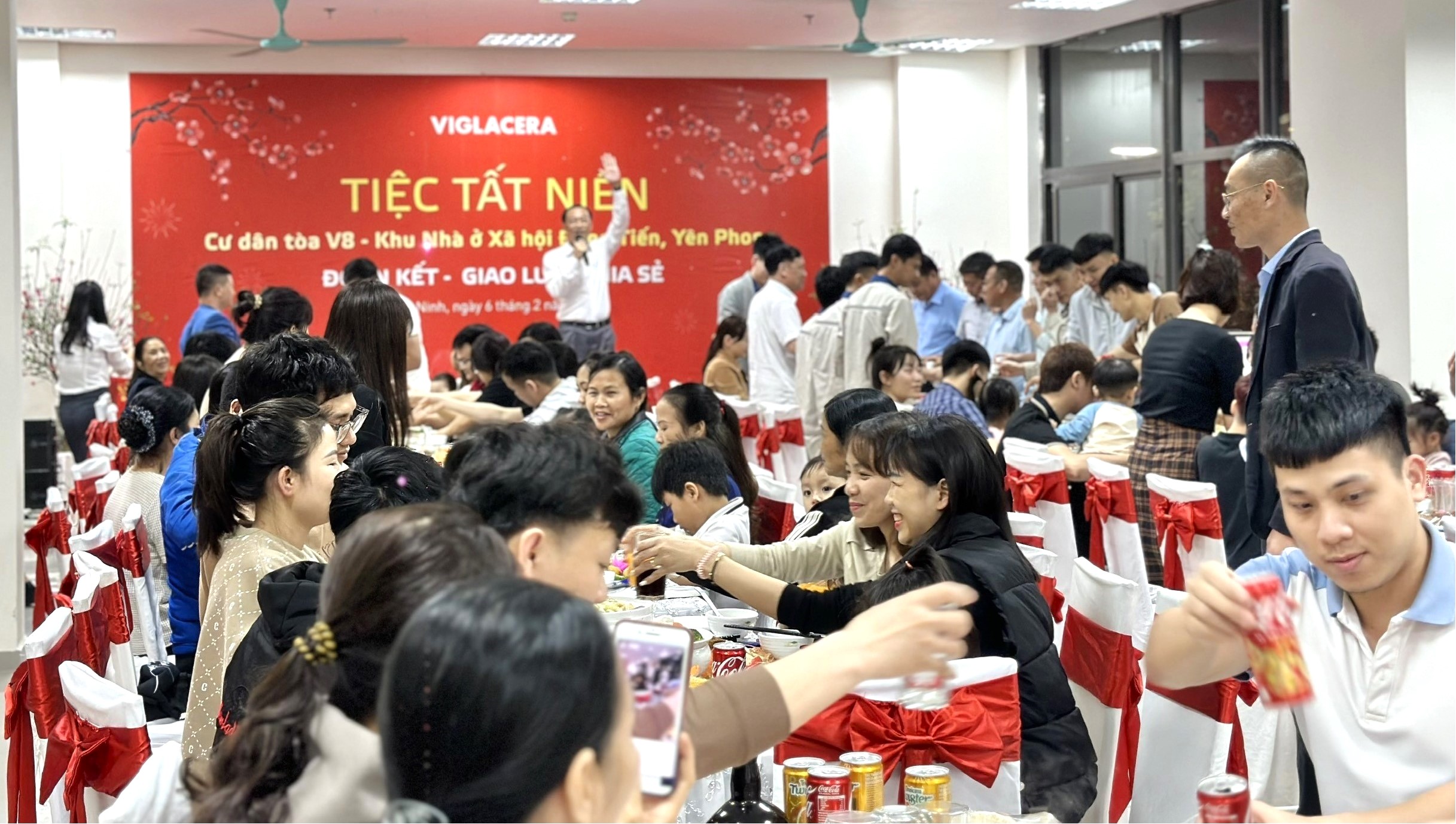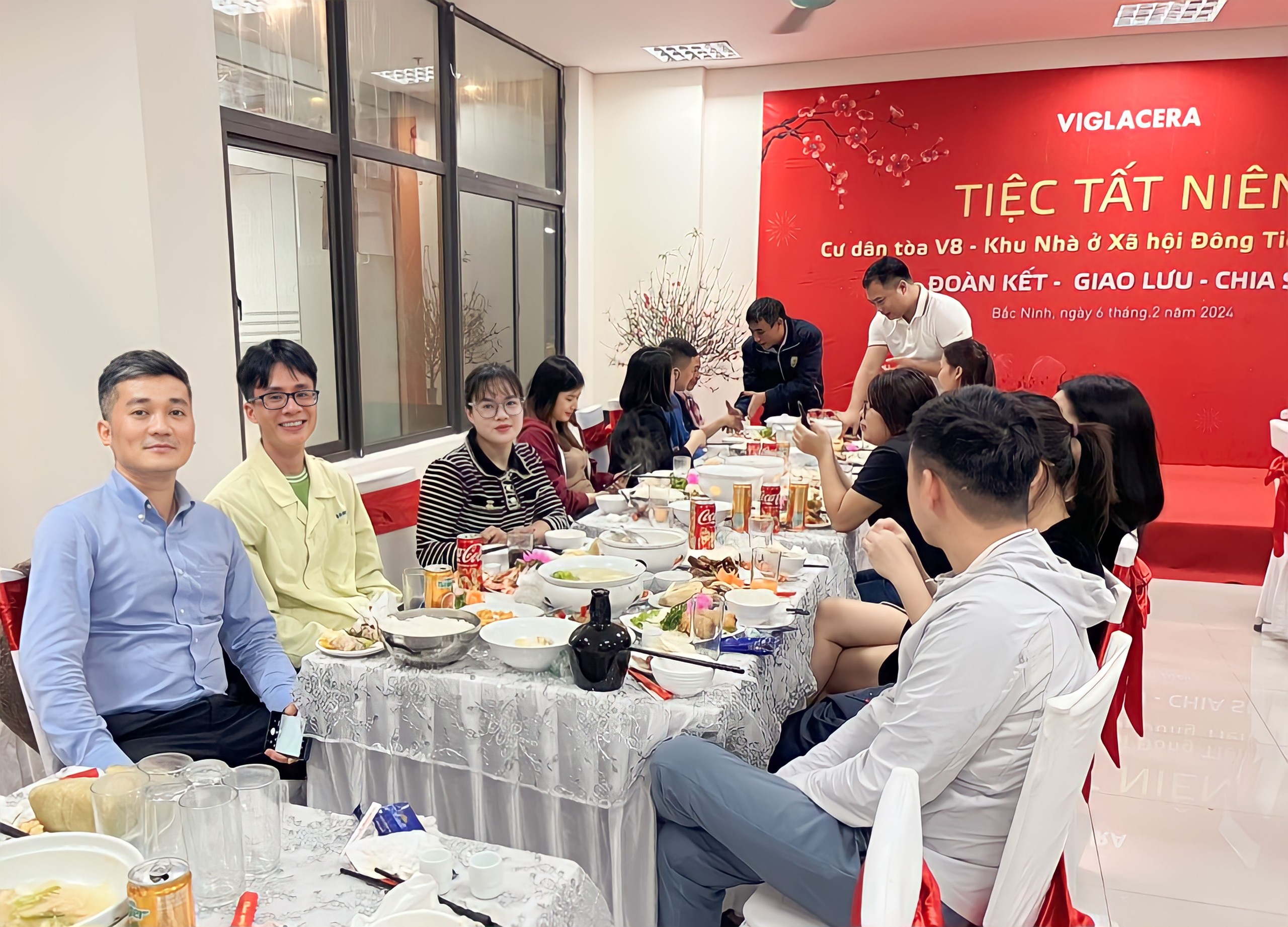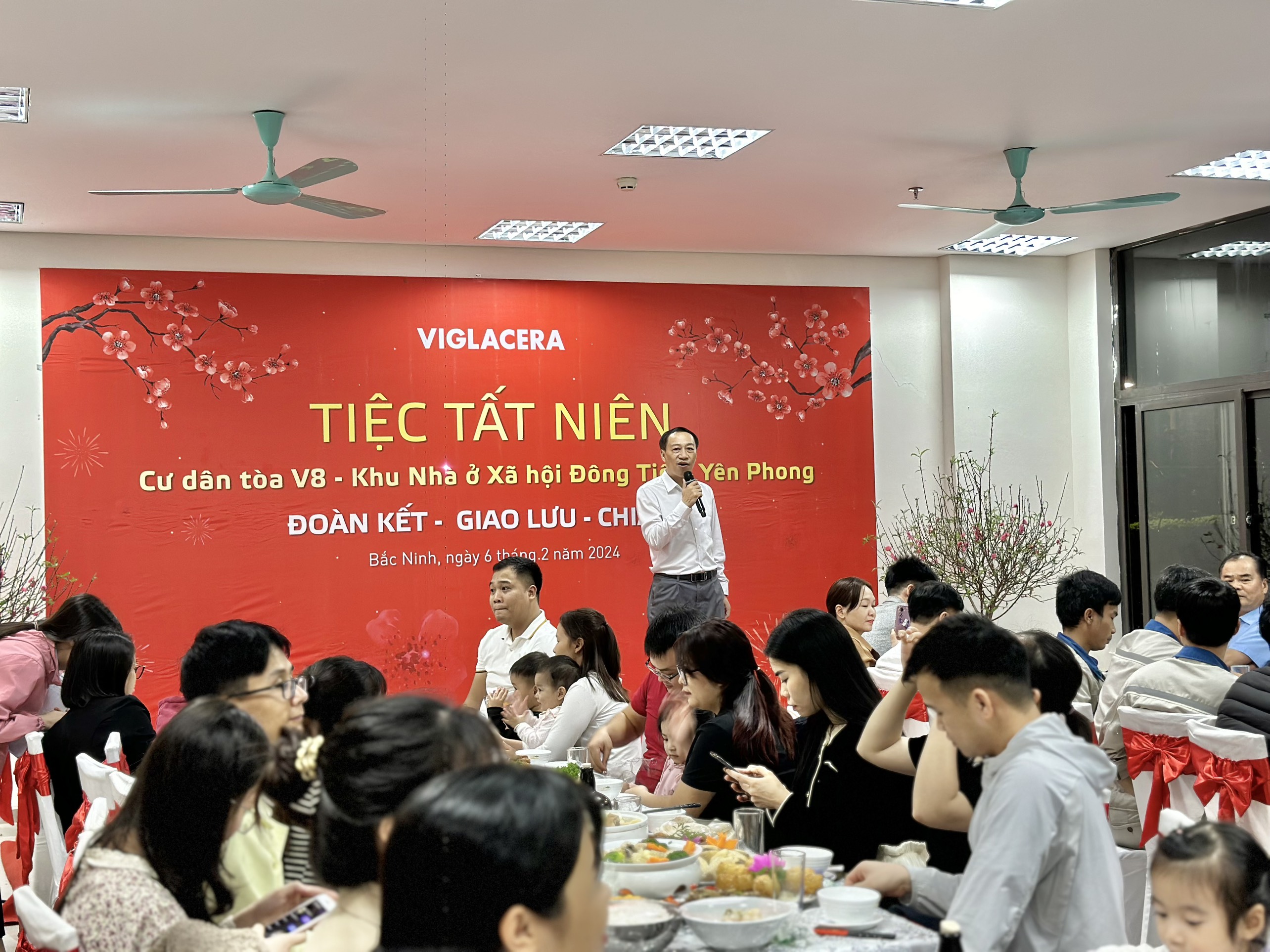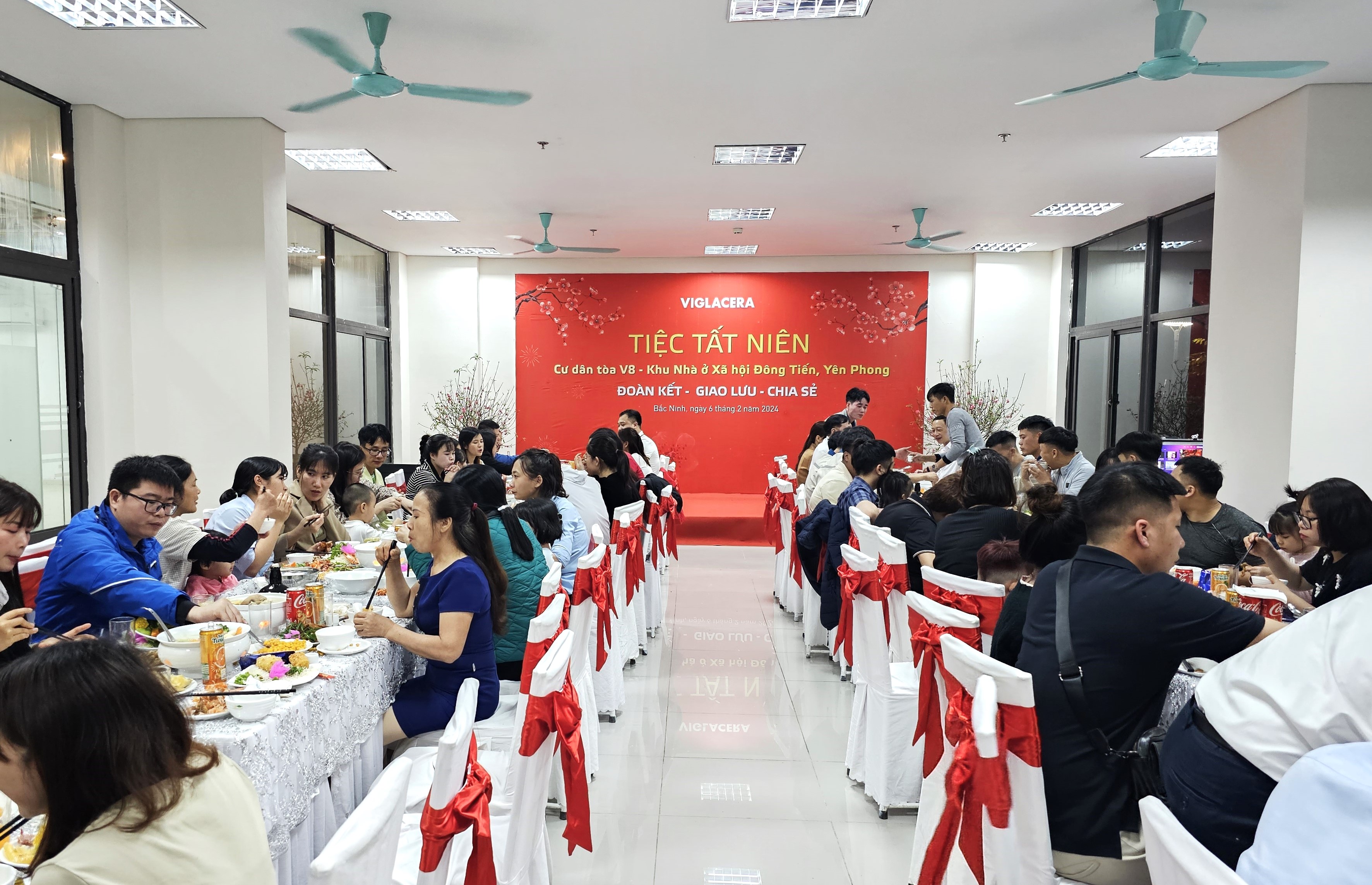 Tiệc Tất niên 2024 là một sự kiện ý nghĩa, mang đến cho cư dân Tòa nhà V8 – Dự án Nhà ở xã hội Viglacera Yên Phong thêm cơ hội để gặp gỡ, giao lưu, cùng nhau ôn lại những kỷ niệm đẹp trong năm cũ và chào đón năm mới Giáp Thìn 2024 trước thời khắc Xuân sang.