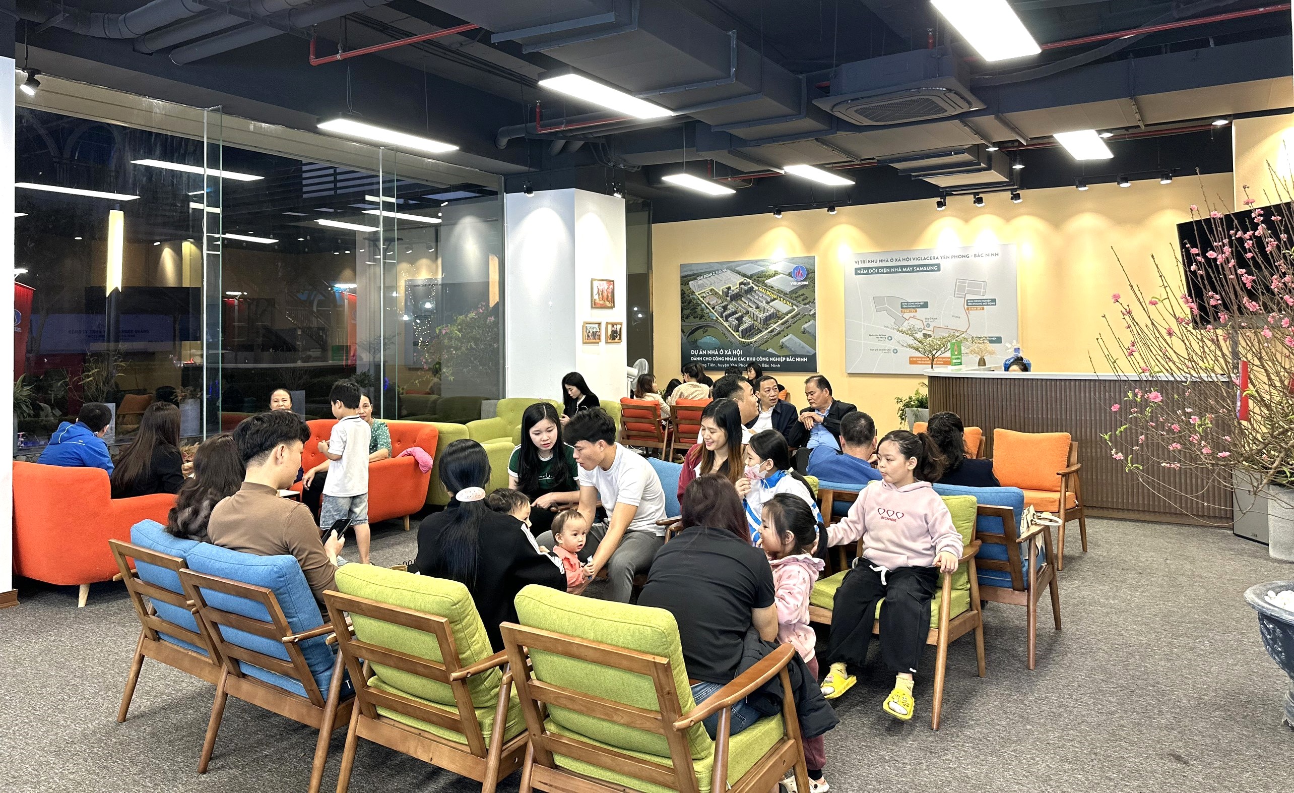 Cư dân trò chuyện vui vẻ tại Trung tâm 1 cửa của dự án