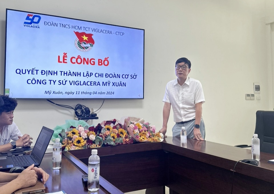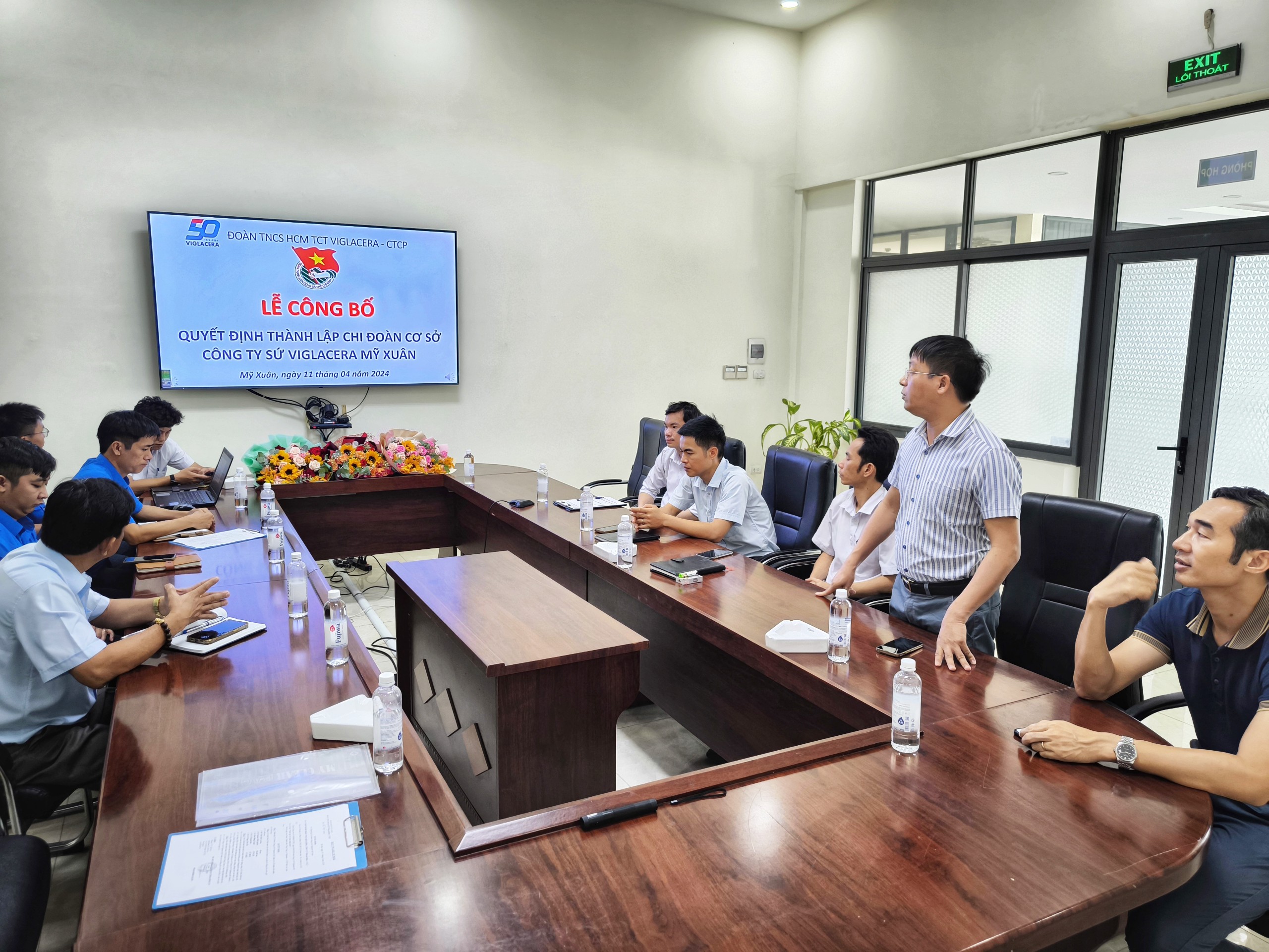 Tại buổi lễ, Đoàn Thanh niên TCT Viglacera - CTCP đã công bố quyết định thành lập và chỉ định Ban chấp hành lâm thời và bí thư Chi đoàn lâm thời cho Chi đoàn Công ty. Phát biểu giao nhiệm vụ cho Chi đoàn công ty, đồng chí Nguyễn Quốc Huy, Ủy viên BCH Đảng ủy TCT và đồng chí Vũ Đình Khánh, Bí thư chi bộ, Giám đốc Công ty nhấn mạnh tầm quan trọng và vai trò của lực lượng thanh niên, là lực lượng dự bị, cánh tay phải của Đảng, luôn phải giữ vững lập trường, luôn gương mẫu, đi đầu và là lực lượng xung kích trong mọi hoạt động, trong đó nhiệm vụ hoàn thành kế hoạch sản xuất kinh doanh luôn phải đặt lên hàng đầu, là nhiệm vụ chính và quan trọng nhất của Công ty Sứ Viglacera Mỹ Xuân.