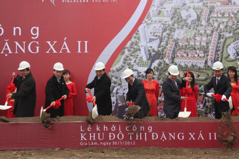 Bên cạnh đó, tết trồng cây xuân Nhâm Thìn 2012 và việc KĐT mới Đặng Xá II cùng được khởi công xây dựng ngày 30/1 - ngày làm việc sớm nhất của Năm mới cũng thắp lên những hy vọng mới về sức bật của một DN đa ngành về VLXD và BĐS. Buổi Lễ khởi công KĐT Đặng Xá (giai đoạn 2) tràn ngập niềm lạc quan về một tương lai rạng ngời của khu đô thị đậm dấu ấn nhân văn, dấu ấn của VIGLACERA - “những người thắp lửa”. Phát biểu tại buổi Lễ, Bộ trưởng Xây dựng Trịnh Đình Dũng và Chủ tịch UBND Thành phố Hà Nội đều hết sức hoan nghênh nỗ lực của chủ đầu tư Viglacera. Bộ trưởng mong rằng những nỗ lực đó sẽ giúp người dân có cuộc sống hạnh phúc hơn, giá cả nhà ở phù hợp hơn. Còn Chủ tịch Hà Nội bày tỏ sự cảm kích về những động thái tích cực của Viglacera trong việc góp phần kiến tạo quỹ nhà ở chất lượng tốt, giá thành hợp lý cho nhân dân Thủ đô.