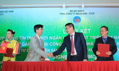 Ký kết Hợp đồng tín dụng giữa ông Nguyễn Anh Tuấn – TGĐ Tổng công ty Viglacera với ông Lê Minh Trọng – Giám đốc Sở Giao dịch 1, NH Phát triển Việt Nam